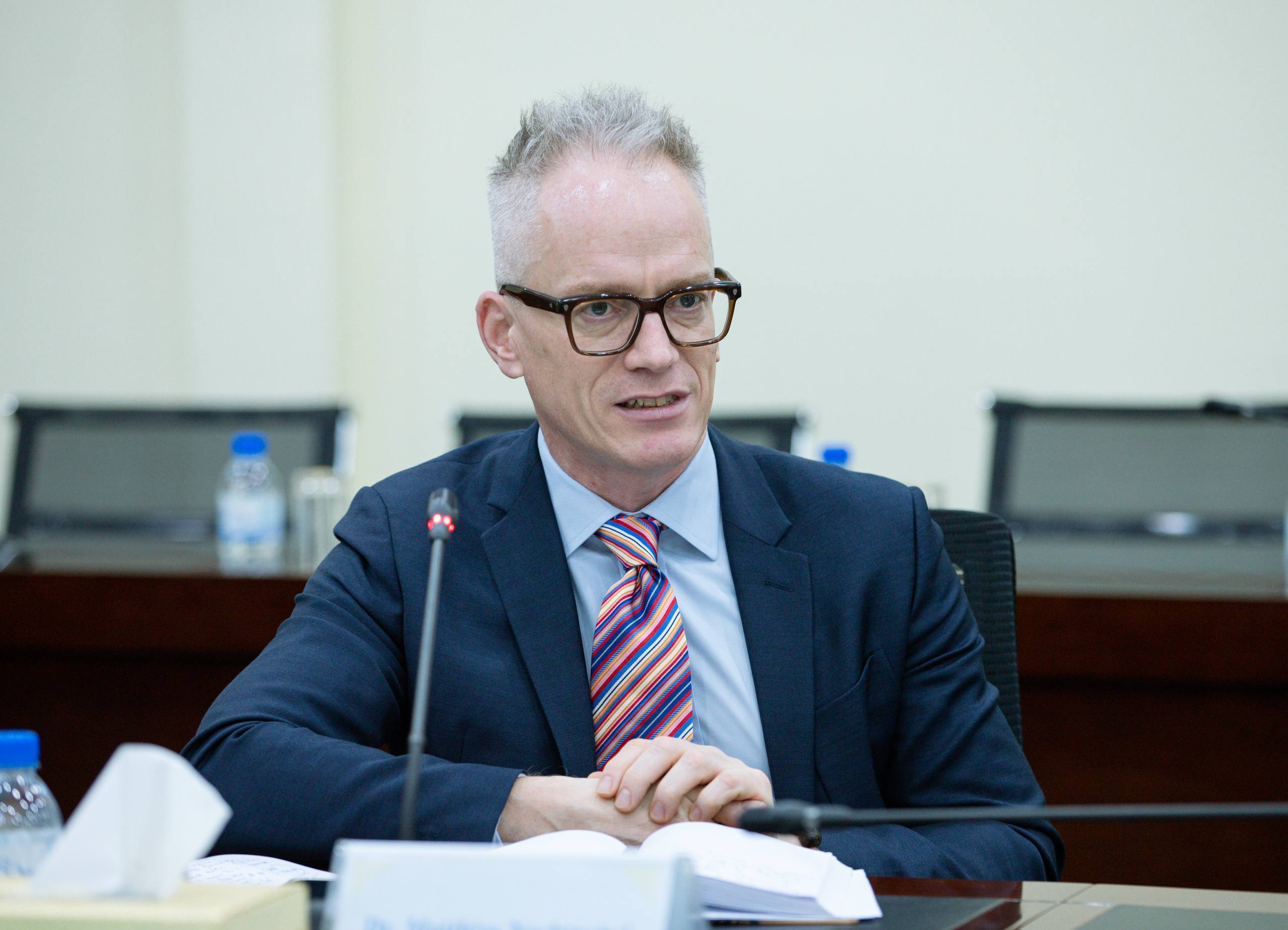ជាការឆ្លើយតប លោក Thomas Finken បានថ្លែងអំណរគុណចំពោះ ឯកឧត្ដមរដ្ឋមន្រ្តី ដែលបានផ្តល់ព័ត៌មានយ៉ាងលម្អិតពាក់ព័ន្ធនឹងវិស័យសន្តិសុខសង្គមរបស់កម្ពុជា ព្រមទាំងបានកោតសរសើរ និងវាយតម្លៃខ្ពស់ចំពោះកិច្ចខិតខំប្រឹងប្រែងរបស់ក្រសួង។