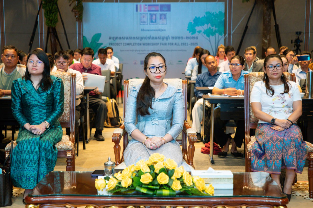 (ភ្នំពេញ)៖ លោកជំទាវ សុវណ្ណ វណ្ណារតន៍ រដ្ឋមន្ត្រីស្ដីទី ក្រសួងការងារ និងបណ្តុះបណ្តាលវិជ្ជាជីវៈ នៅព្រឹកថ្ងៃទី១៩ ខែវិច្ឆិកា ឆ្នាំ២០២៥ បានអញ្ជើញជាអធិបតីក្នុងពិធីអបអរសាទរសមិទ្ធផលគម្រោង “សមភាពសម្រាប់ទាំងអស់គ្នា (FAIR 4 ALL-F4A) ឆ្នាំ២០២១-២០២៥” រៀបចំដោយអង្គការអុកស្វាមប្រចាំកម្ពុជា រួមជាមួយអង្គការដៃគូ ដែលមានអ្នកចូលរួមប្រមាណ ១៣០នាក់ មកពីក្រសួង ស្ថាប័នរដ្ឋ វិស័យឯកជន កសិករកៅស៊ូខ្នាតតូច កម្មករក្នុងវិស័យកសិកម្ម និងអង្គការជាតិ-អន្តរជាតិ នៅសណ្ឋាគារ សាន់ អេន ម៉ូន រាជធានីភ្នំពេញ។