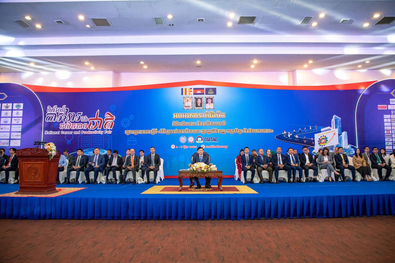 (ភ្នំពេញ)៖ ព្រឹត្តិការណ៍ប្រចាំឆ្នាំលើកទី១៥ នៃពិធីបើកពិព័រណ៍ការងារ និងផលិតភាពជាតិឆ្នាំ២០២៥ ក្រោមអធិបតីភាពដ៏ខ្ពង់ខ្ពស់ឯកឧត្តម ហេង សួរ រដ្ឋមន្រ្តីក្រសួងការងារ និងបណ្តុះបណ្តាលវិជ្ជាជីវៈ នៅថ្ងៃទី១ ខែវិច្ឆិកា ឆ្នាំ២០២៥ នៅមជ្ឈមណ្ឌលកោះពេជ្រ ដែលមានអ្នកចូលរួមមកពីគ្រប់មជ្ឈដ្ឋាន ប្រមាណជាង ១ ៨០០នាក់ គឺជាវេទិកាដើម្បីពង្រឹងទំនាក់ទំនងល្អ និងកាន់តែជិតស្និទ្ធរវាងរាជរដ្ឋាភិបាល ដៃគូអភិវឌ្ឍន៍ និយោជក រោងចក្រ សហគ្រាស កម្មករនិយោជិត គ្រឹះស្ថានអប់រំបណ្តុះបណ្តាលបច្ចេកទេស និងវិជ្ជាជីវៈ (TVET) សិស្ស និស្សិត យុវជន និងអ្នកស្វែងរកការងារធ្វើ។