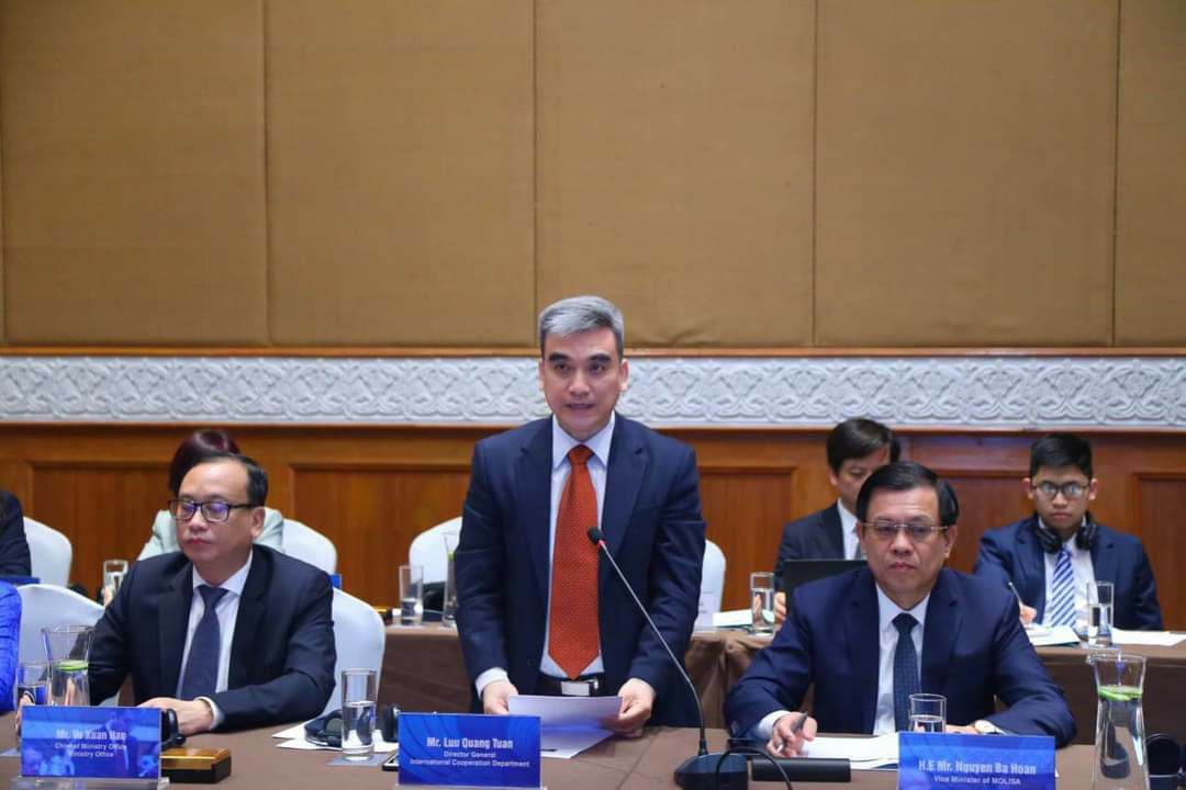 (ហាណូយ-វៀតណាម)៖ កិច្ចប្រជុំថ្នាក់រដ្ឋមន្រ្តីការងារកម្ពុជា-វៀតណាម និងកិច្ចប្រជុំពាក់ព័ន្ធ នៅថ្ងៃទី៤-៥ ខែមេសា ឆ្នាំ២០២៣ ដែលភាគីកម្ពុជាដឹកនាំដោយឯកឧត្តមបណ្ឌិត អុិត សំហេង រដ្ឋមន្ត្រីក្រសួងការងារ និងបណ្តុះបណ្តាលវិជ្ជាជីវៈ និងភាគីវៀតណាមដឹកនាំដោយឯកឧត្តម DAO NGUC DUNG រដ្ឋមន្រ្តីក្រសួងការងារ ជនពិការ និងសង្គមកិច្ច ដើម្បីពិភាក្សា និងរៀបចំផែនការសកម្មភាពរយៈពេល ៥ឆ្នាំ (ឆ្នាំ២០២៣-២០២៧) សម្រាប់អនុវត្តអនុស្សរណៈនៃការយោគយល់គ្នារវាងក្រសួងការងារ និងបណ្តុះបណ្តាលវិជ្ជាជីវៈកម្ពុជា និងក្រសួងការងារ ជនពិការ និងសង្គមកិច្ចវៀតណាម ក្នុងកិច្ចសហប្រតិបត្តិការលើវិស័យការងារ ដែលឯកឧត្តមបណ្ឌិត អុិត សំហេង និងឯកឧត្តម DAO NGUC DUNG បានចុះហត្ថលេខាជាមួយគ្នានៅកម្ពុជា កាលពីថ្ងៃទី៨ ខែវិច្ឆិកា ឆ្នាំ២០២២ កន្លងមក ក្នុ្ងងអំឡុងពេលដែលប្រទេសកម្ពុជា កំពុងធ្វើម្ចាស់ផ្ទះកិច្ចប្រជុំកំពូលអាស៊ានលើកទី៤០-៤១ និងកិច្ចប្រជុំកំពូលពាក់ព័ន្ធ។