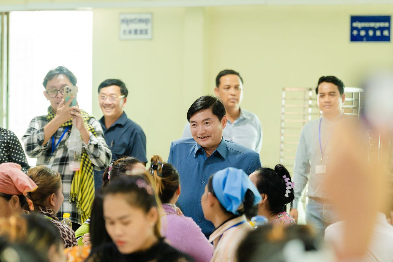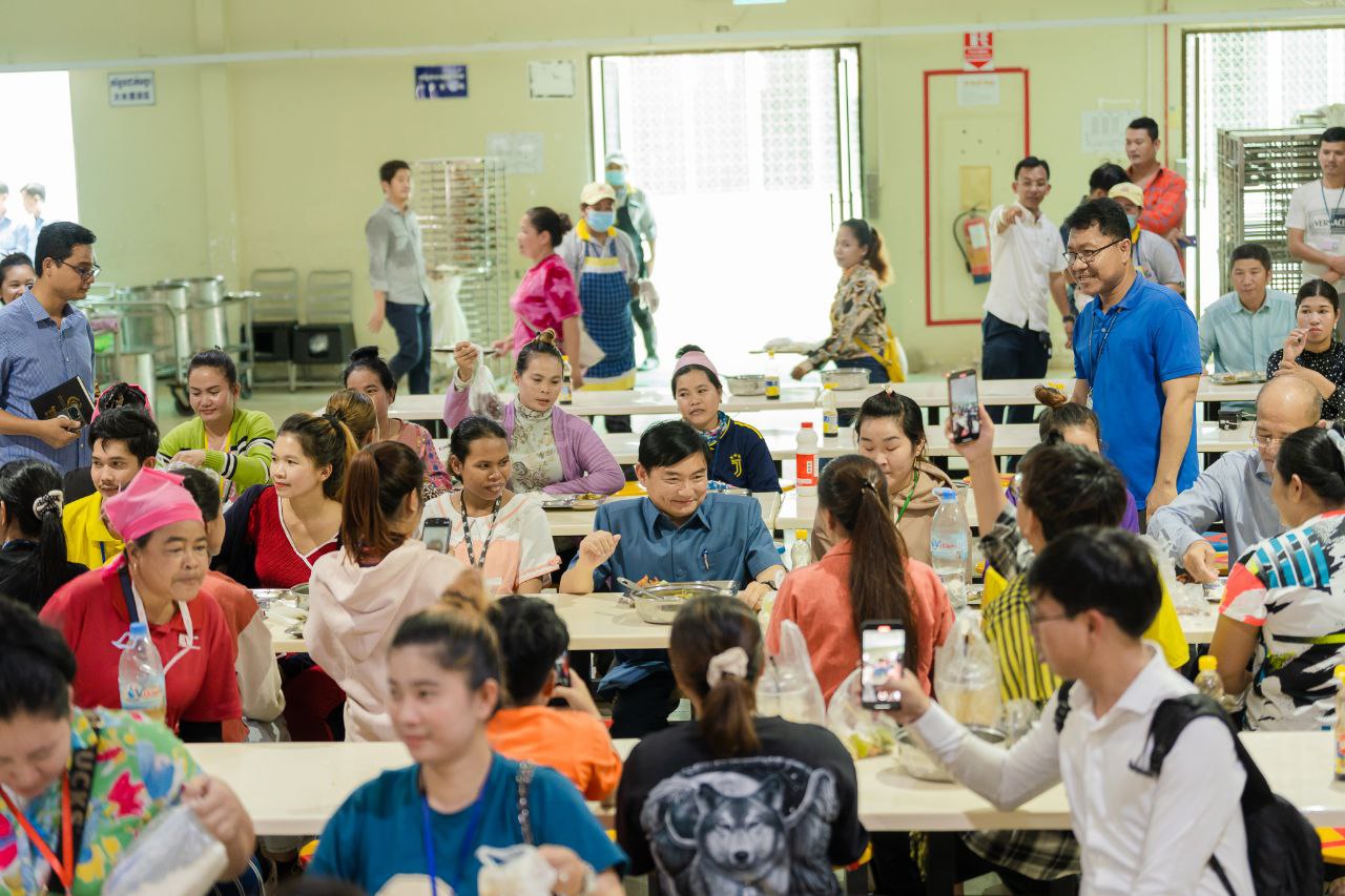 បន្ថែមពីនេះ ក្រោយការទទួលទានអាហាររួច ឯកឧត្តមរដ្ឋមន្ត្រីក៏បានសួរសុខទុក្ខបងប្អូនកម្មករនៅកន្លែងធ្វើការផងដែរ៕