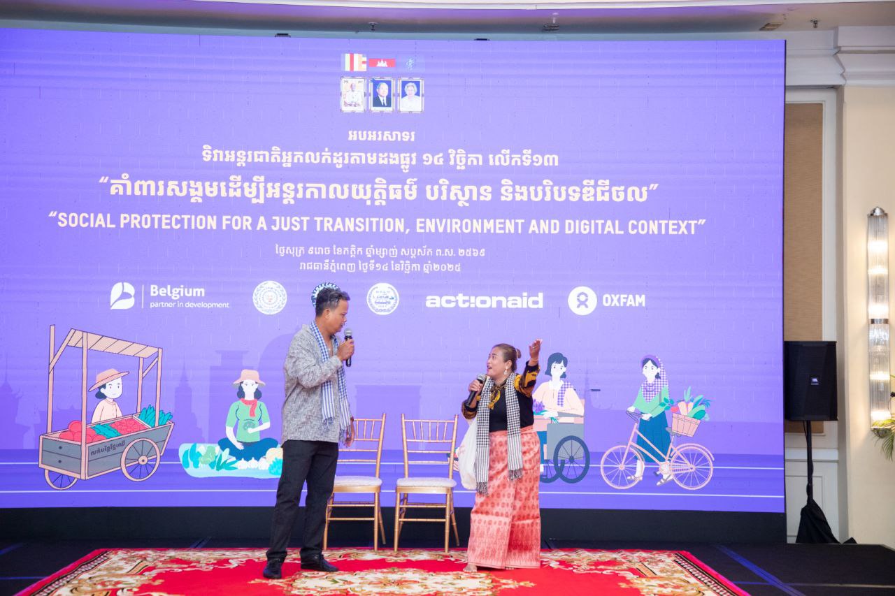 (ភ្នំពេញ)៖ ឯកឧត្តម ហេង សួរ រដ្ឋមន្ត្រីក្រសួងការងារ និងបណ្តុះបណ្តាលវិជ្ជាជីវៈ អញ្ជើញជាអធិបតីក្នុងពិធីបើកវេទិកាទិវាអន្តរជាតិអ្នកលក់ដូរតាមដងផ្លូវ ១៤ វិច្ឆិកា លើកទី១៣ ក្រោមប្រធានបទ ស្តីពី“គាំពារសង្គមដើម្បីអន្តរកាលយុត្តិធម៌ បរិស្ថាន និងបរិបទឌីជីថល” នាព្រឹកថ្ងៃទី១៤ ខែវិច្ឆិកា ឆ្នាំ២០២៥ នៅសណ្ឋាគារ Raffles Hotel Le Royal ដោយមានអ្នកចូលរួមប្រមាណជាង ២០០នាក់ ដែលជាអ្នកលក់ដូរតាមផ្លូវ តំណាងមកពីវិស័យសេដ្ឋកិច្ចក្រៅប្រព័ន្ធ អង្គការសង្គមស៊ីវិល ដៃគូអភិវឌ្ឍ និងតំណាងក្រសួងស្ថាប័នពាក់ព័ន្ធ។