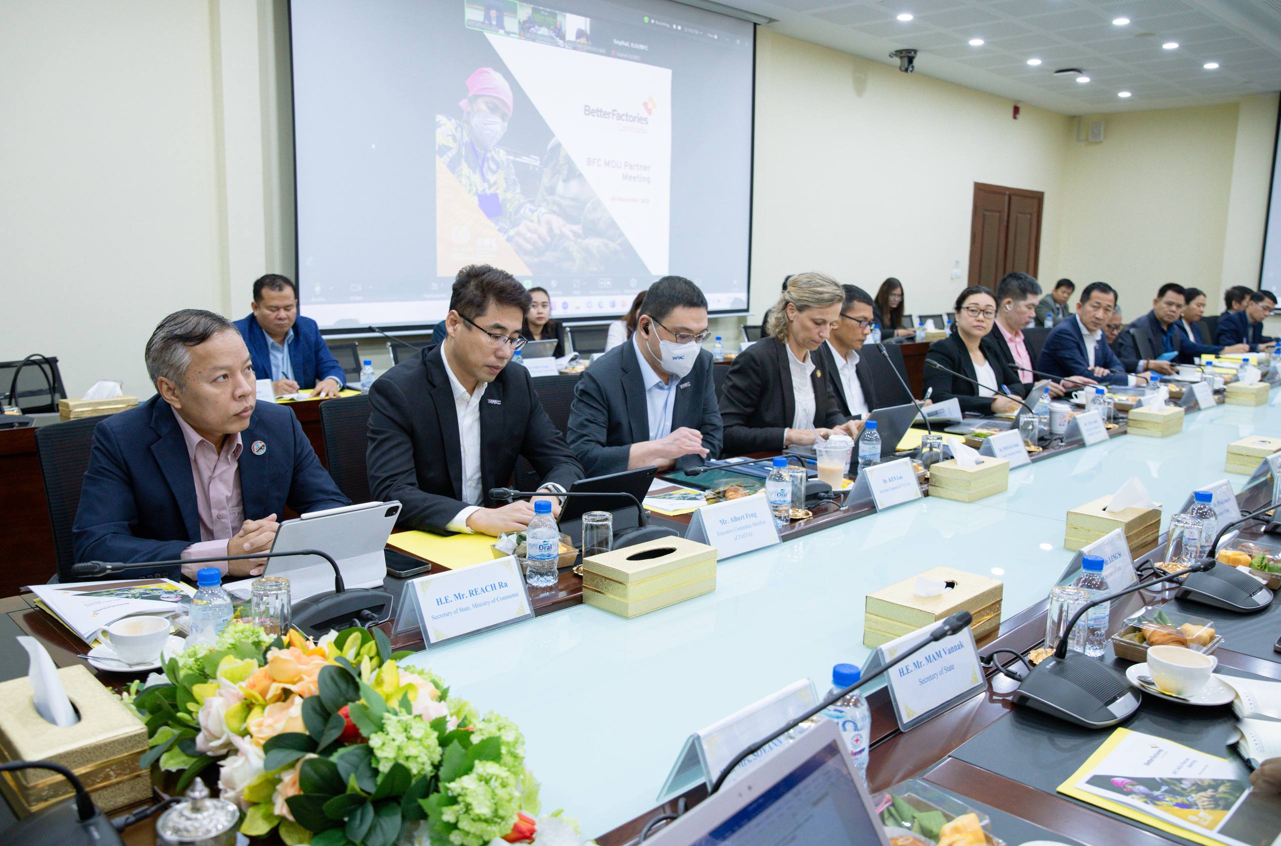 ឯកឧត្ដមរដ្ឋមន្ត្រី បានវាយតម្លៃខ្ពស់ចំពោះការខិតខំចូលរួមរបស់ក្រុមការងារគម្រោងរោងចក្រកាន់តែប្រសើរ (ILO-BFC) ដោយក្រសួងពាណិជ្ជកម្មនិងសមាគមវាយនភណ្ឌ សម្លៀកបំពាក់ ស្បែកជើង និងផលិតផលធ្វើដំណើរនៅកម្ពុជា (TAFTAC) សម្រាប់កិច្ចសហការ ការគាំទ្រ និងការចូលរួមអនុវត្តអនុស្សរណៈនៃការយោគយល់គ្នានាពេលកន្លងមកទទួលបានលទ្ធផលល្អ តាមរយ:ការជំរុញការគោរពលក្ខខណ្ឌការងារ និងបង្កើនភាពទាក់ទាញ ព្រមទាំងលើកកម្ពស់កិត្យានុភាពរបស់កម្ពុជា ជាប្រភពផ្គត់ផ្គង់ប្រកបដោយទំនុកចិត្តសម្រាប់ម្ចាស់ម៉ាក និងអ្នកបញ្ជាទិញ។