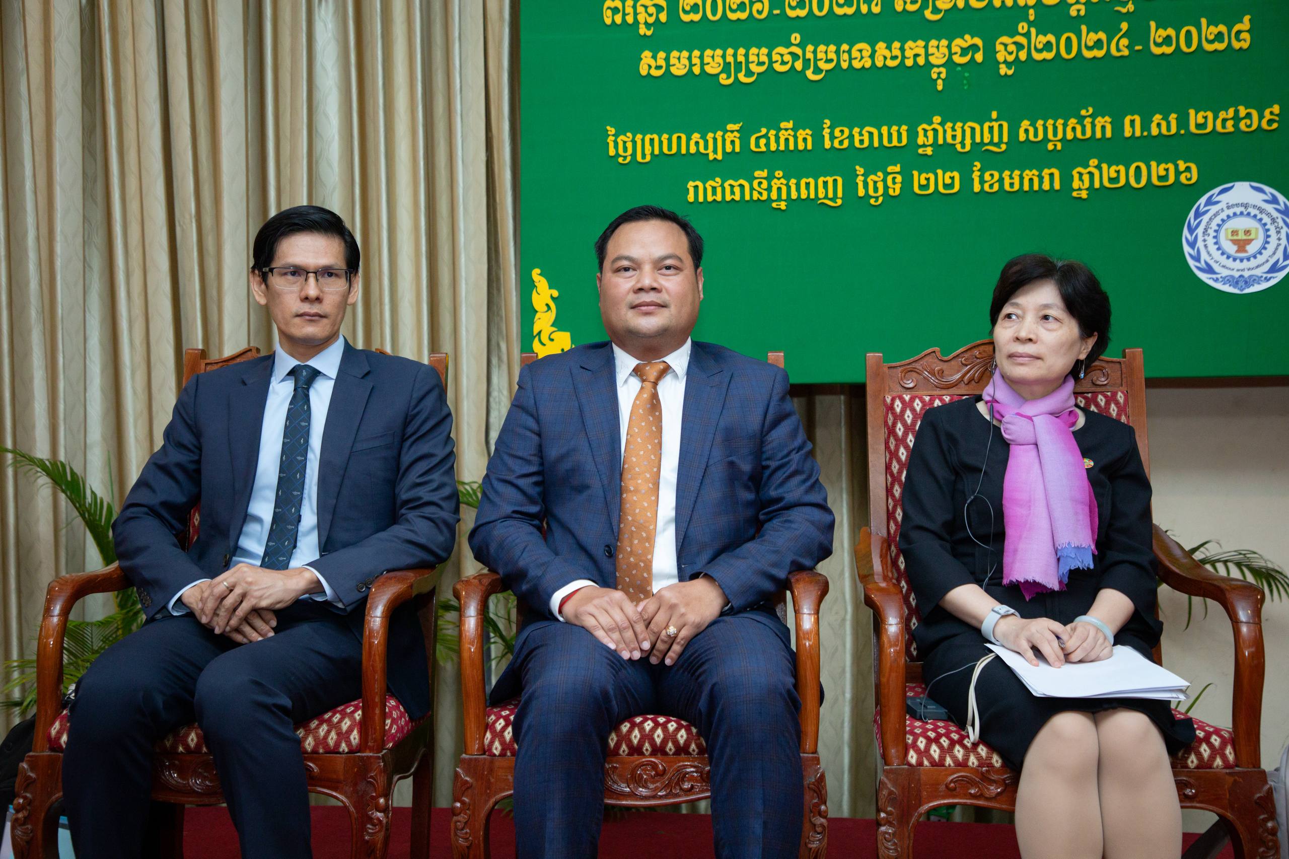 (ភ្នំពេញ)៖ ឯកឧត្តម ហេង សួរ រដ្ឋមន្ត្រីក្រសួងការងារ និងបណ្តុះបណ្តាលវិជ្ជាជីវៈ បានអញ្ជើញជាអធិបតីក្នុងពិធីបើក “សិក្ខាសាលាត្រីភាគីថ្នាក់ជាតិ ស្ដីពីការរៀបចំ និងផ្តល់សុពលភាពលើផែនការការងាររយៈពេលពីរឆ្នាំ ២០២៦-២០២៧” នារសៀលថ្ងៃទី២២ ខែមករា ឆ្នាំ២០២៦ នៅសណ្ឋាគារកាំបូឌីយ៉ាណា។