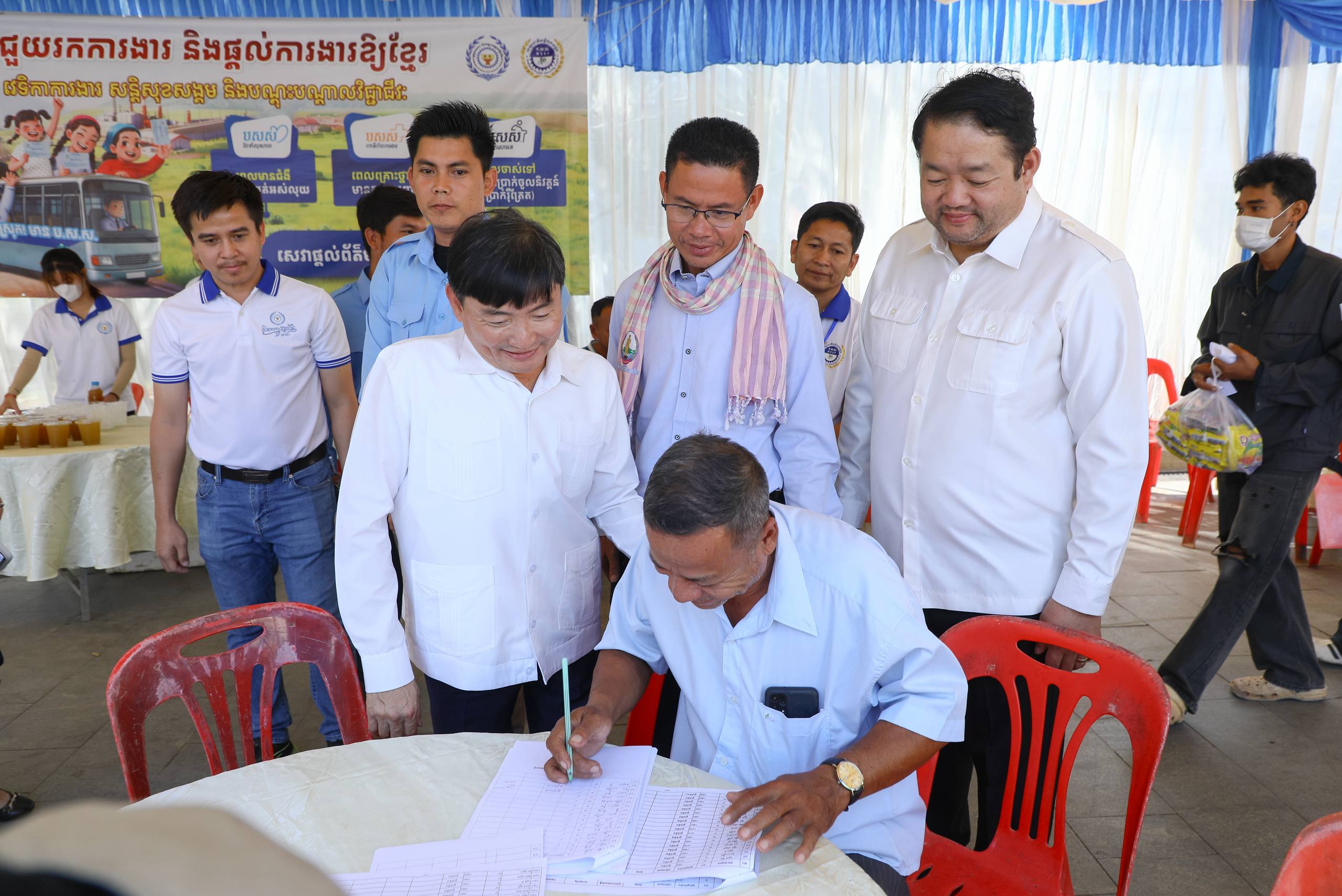 ឯកឧត្តមរដ្ឋមន្រ្តីបានលើកទឹកចិត្តឱ្យបងប្អូនអតីតពលករពិចារណាក្នុងការជ្រើសរើសការងារក្នុងស្រុក ដែលបន្ថែមលើប្រាក់ឈ្នួល ក៏ទទួលបានអត្ថប្រយោជន៍ជាច្រើនទាំងពេលបច្ចុប្បន្ន និងអនាគត តាមរយៈការប្រើប្រាស់ប័ណ្ណ ប.ស.ស. ជាពិសេសជួយសម្រាលបន្ទុកគ្រួសារពេលមានជំងឺ ឬចាស់ជរា។ ប៉ុន្តែបើជ្រើសរើសការងារក្រៅប្រទេស គួរតែទៅធ្វើការនៅប្រទេសដែលមានប្រាក់ឈ្នួលខ្ពស់។