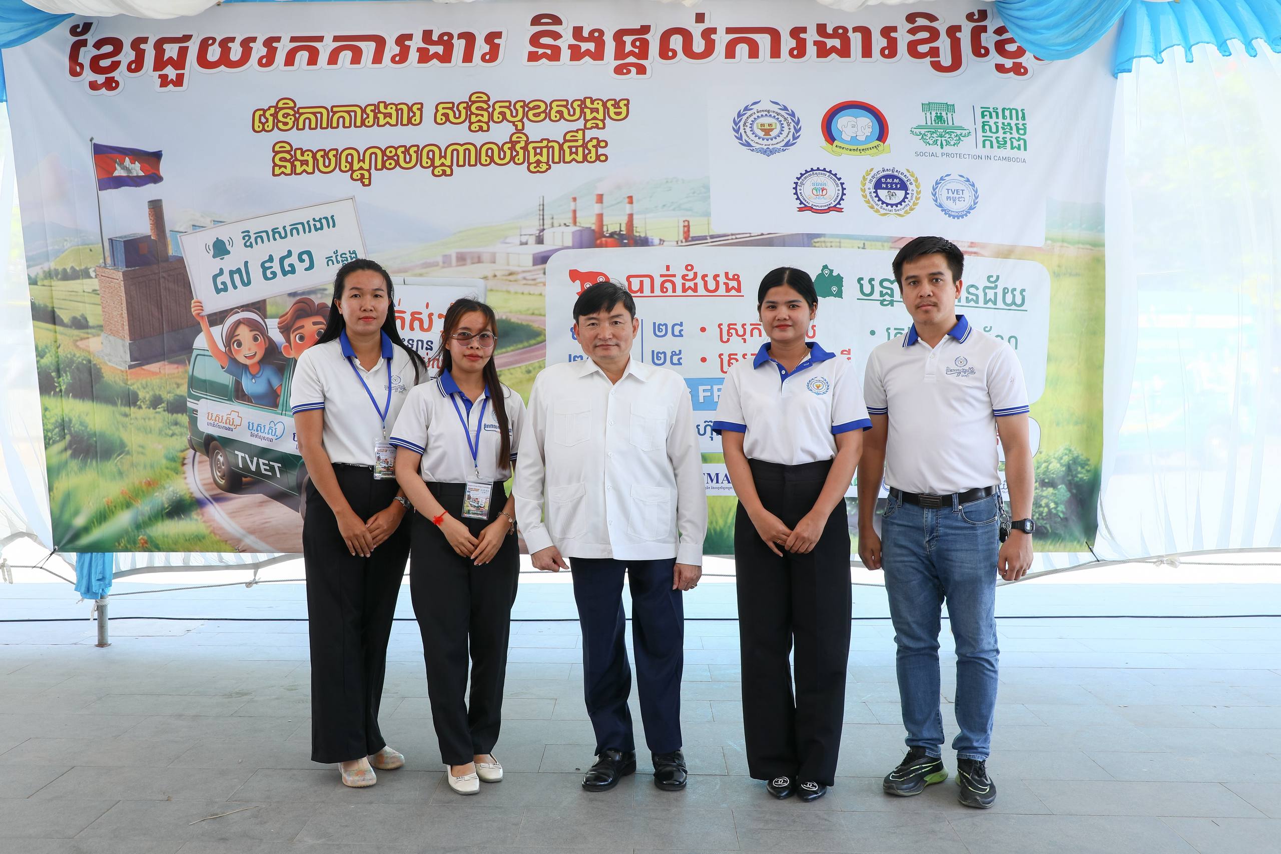 ទន្ទឹមនេះ ឯកឧត្តមរដ្ឋមន្រ្តីក៏បានជម្រាបជូនអំពីអត្ថប្រយោជន៍របបសន្តិសុខសង្គម (ប.ស.ស.) សម្រាប់កម្មករនិយោជិតនៅពេលចូលបម្រើការងារនៅក្នុងស្រុក ព្រមទាំងផ្សព្វផ្សាយ និងចុះឈ្មោះចូលរៀនវគ្គអប់រំបណ្តុះបណ្តាល បច្ចេកទេស និងវិជ្ជាជីវៈ នៅគ្រឹះស្ថានអប់រំបណ្តុះបណ្តាលបច្ចេកទេស និងវិជ្ជាជីវៈ របស់ក្រសួងការងារ និងបណ្តុះបណ្តាលវិជ្ជាជីវៈ ជាពិសេសតាមរយៈកម្មវិធីTVET ១,៥លាននាក់របស់រាជរដ្ឋាភិបាល។
