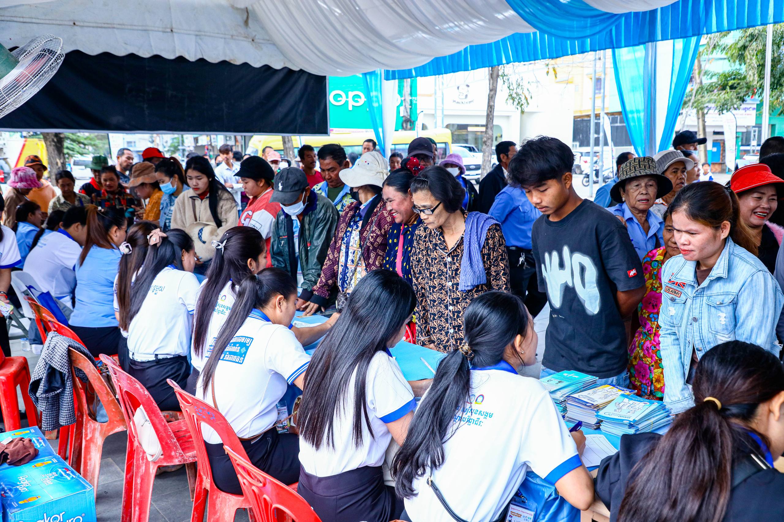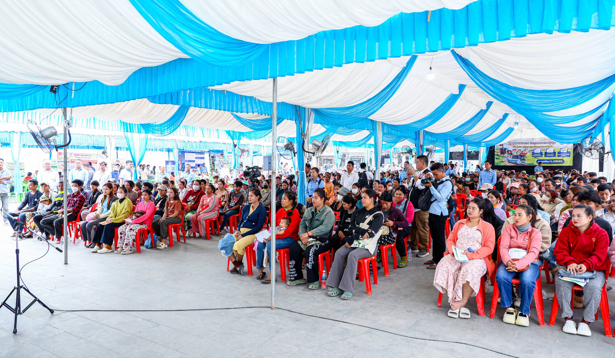 (បន្ទាយមានជ័យ)៖ សហគ្រាស ក្រុមហ៊ុន រោងចក្រធំៗចំនួន ៤ បានចូលរួមសម្ភាសជ្រើសរើសបុគ្គលិកភ្លាមៗដោយផ្ទាល់ នៅក្នុងវេទិកាការងារ សន្តិសុខសង្គម និងបណ្តុះបណ្តាលវិជ្ជាជីវៈ ក្រោមប្រធានបទ «ខ្មែរជួយរកការងារ និងផ្ដល់ការងារឱ្យខ្មែរ» នៅព្រឹកថ្ងៃទី២៤ ខែមករា ឆ្នាំ២០២៦ នៅបរិវេណសួនមានជ័យ ក្នុងក្រុងសិរីសោភ័ណ ខេត្តបន្ទាយមានជ័យ ដែលមានបងប្អូនពលករ និងយុវជនចូលរួមប្រមាណ៧០០នាក់។