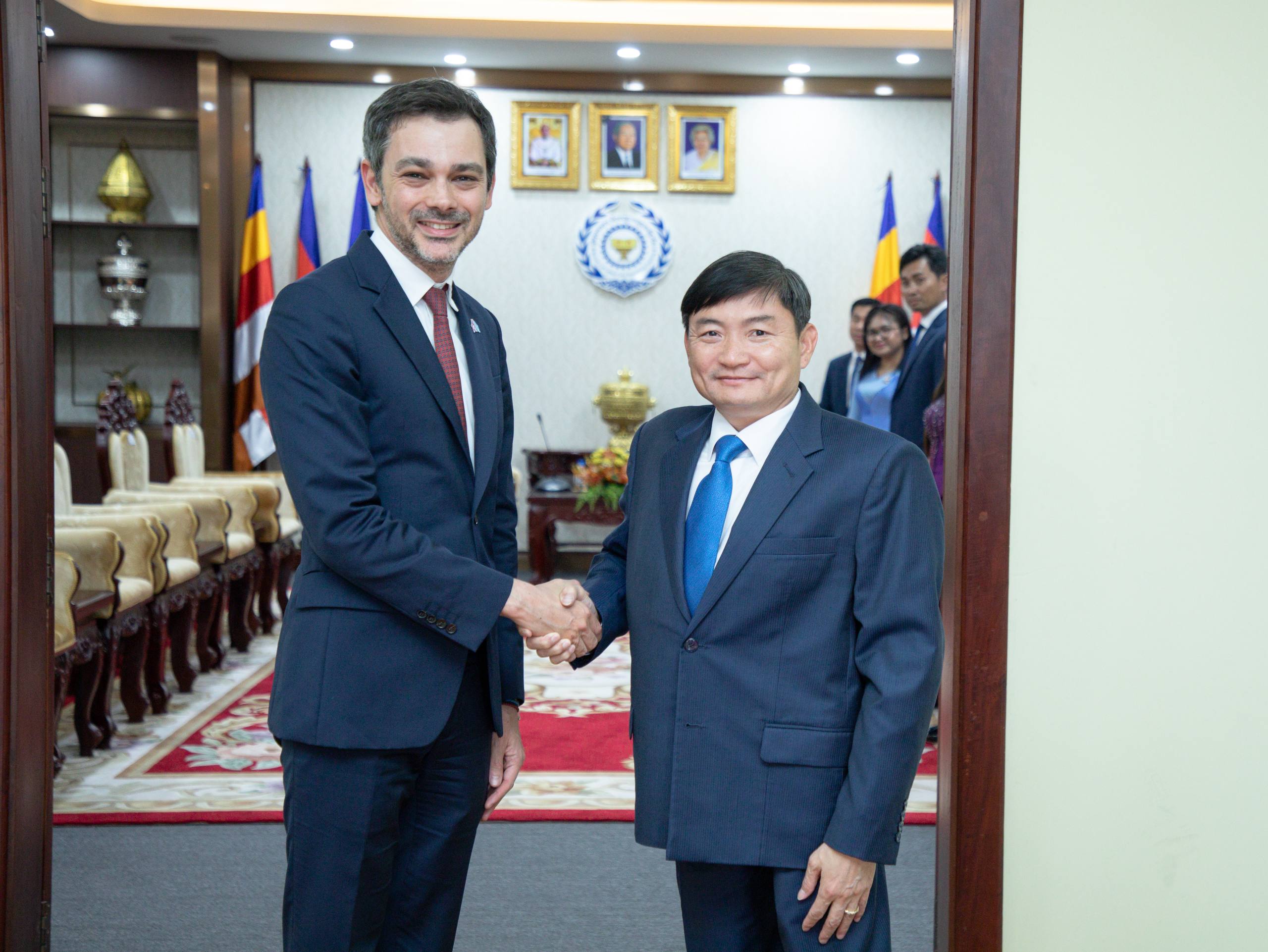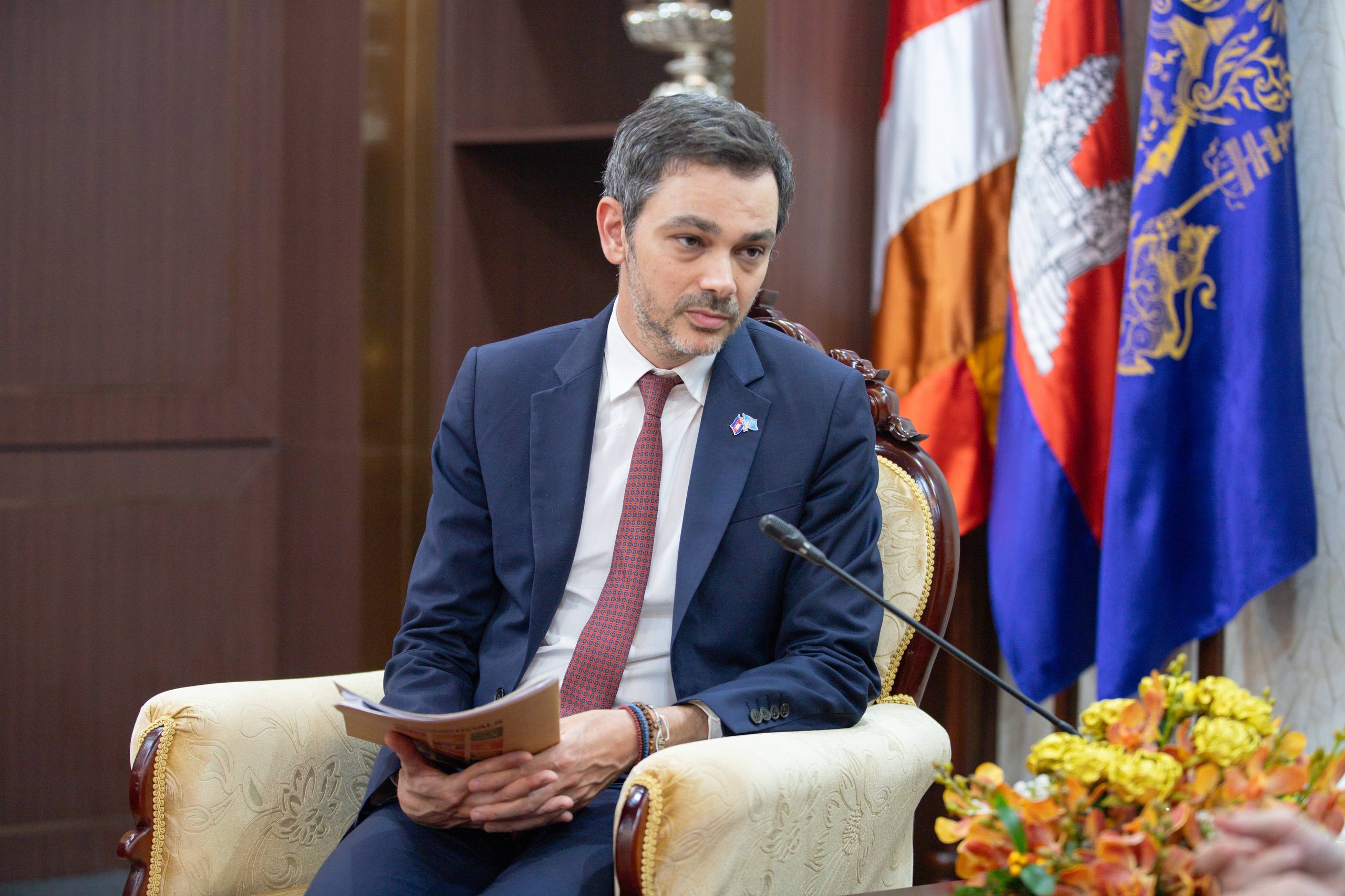 (ភ្នំពេញ)៖ នាទីស្តីការក្រសួង រសៀលថ្ងៃអង្គារ ទី២៧ ខែមករា ឆ្នាំ២០២៦ ឯកឧត្តម ហេង សួរ រដ្ឋមន្ត្រីក្រសួងការងារ និងបណ្តុះបណ្តាលវិជ្ជាជីវៈ បានទទួលជួបសម្តែងការគួរសម និងពិភាក្សាការងារជាមួយ ឯកឧត្តម Flavio Bonetti តំណាងអង្គការយូណេស្កូ (UNESCO) ថ្មីប្រចាំកម្ពុជា ដើម្បីពង្រឹងកិច្ចសហប្រតិបត្តិការលើវិស័យការងារ និងការបណ្ដុះបណ្ដាលបច្ចេកទេស និងវិជ្ជាជីវៈឱ្យកាន់តែមានសក្តានុពល។