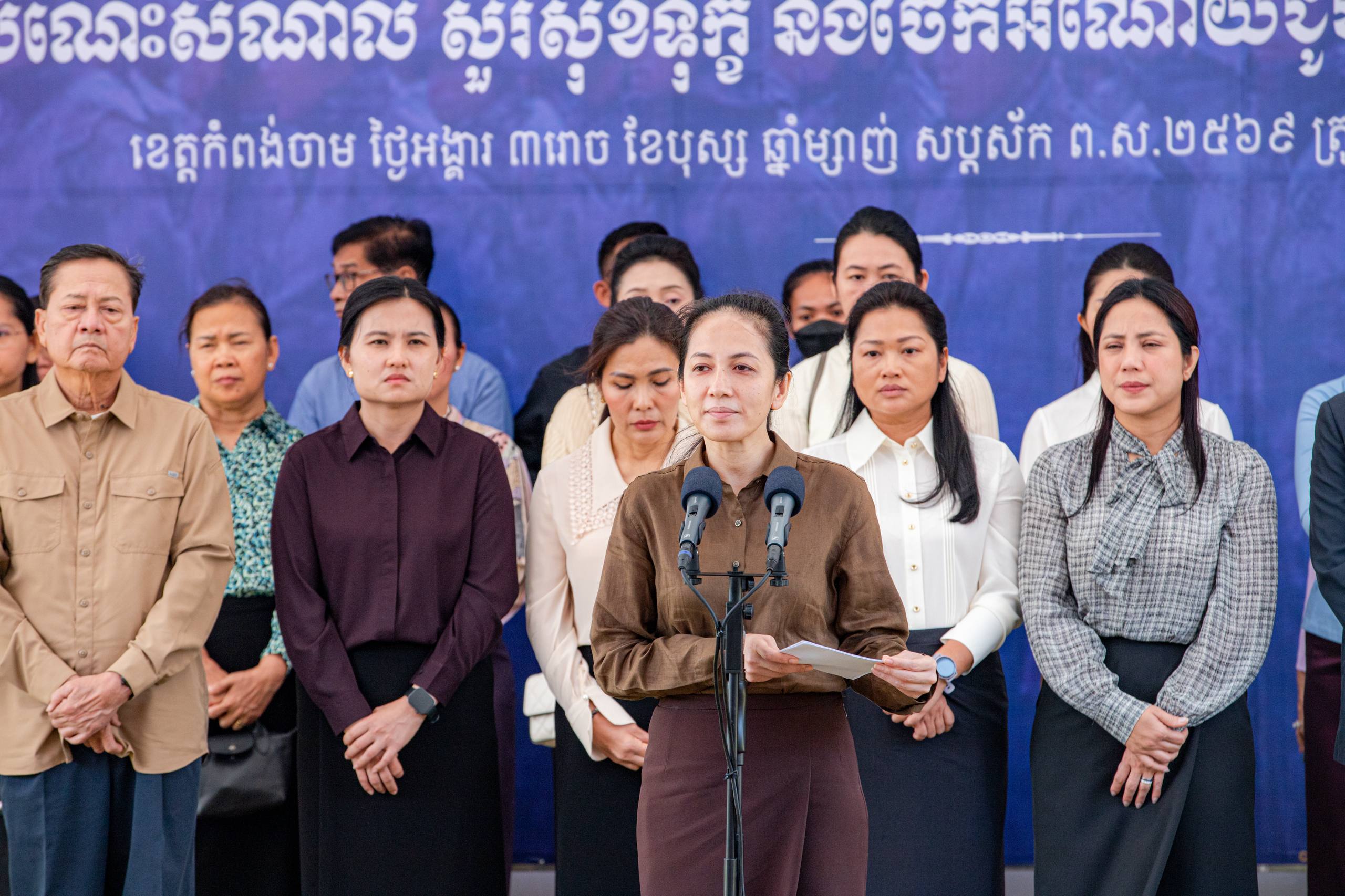 (ខេត្តកំពង់ចាម)៖ នាព្រឹកថ្ងៃអង្គារ ទី៦ ខែមករា ឆ្នាំ២០២៦ នេះ ឯកឧត្តម ហេង សួរ រដ្ឋមន្រ្តីក្រសួងការងារ និងបណ្តុះបណ្តាលវិជ្ជាជីវៈ អនុប្រធានក្រុមការងាររាជរដ្ឋាភិបាលចុះមូលដ្ឋានខេត្តកំពង់ចាម និងជាប្រធានក្រុមការងាររាជរដ្ឋាភិបាលចុះមូលដ្ឋានស្រុកកំពង់សៀម បានអញ្ជើញអមដំណើរ លោកជំទាវបណ្ឌិត ពេជ ចន្ទមុន្នី ហ៊ុនម៉ាណែត ក្នុងពិធីសំណេះសំណាល សួរសុខទុក្ខ និងនាំយកអំណោយចែកជូនដល់គ្រួសារវីរកងទ័ពជួរមុខ និងគ្រួសារវីរកងទ័ពពលី សរុបចំនួន ៥៤៣គ្រួសារ និងកូនៗវីរកងទ័ពជួរមុខ ១១៩នាក់ ស្ថិតក្នុងខេត្តកំពង់ចាម។
