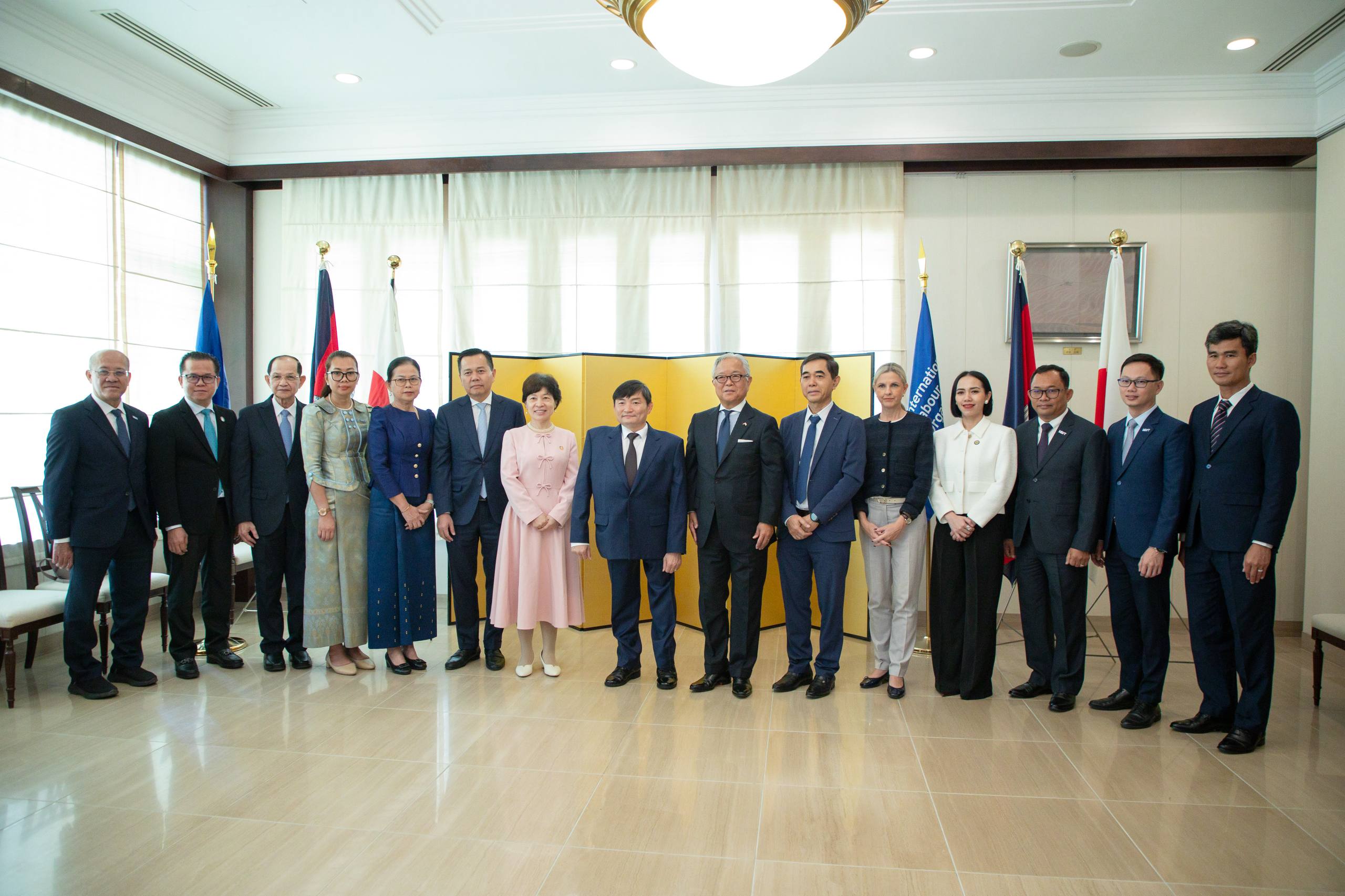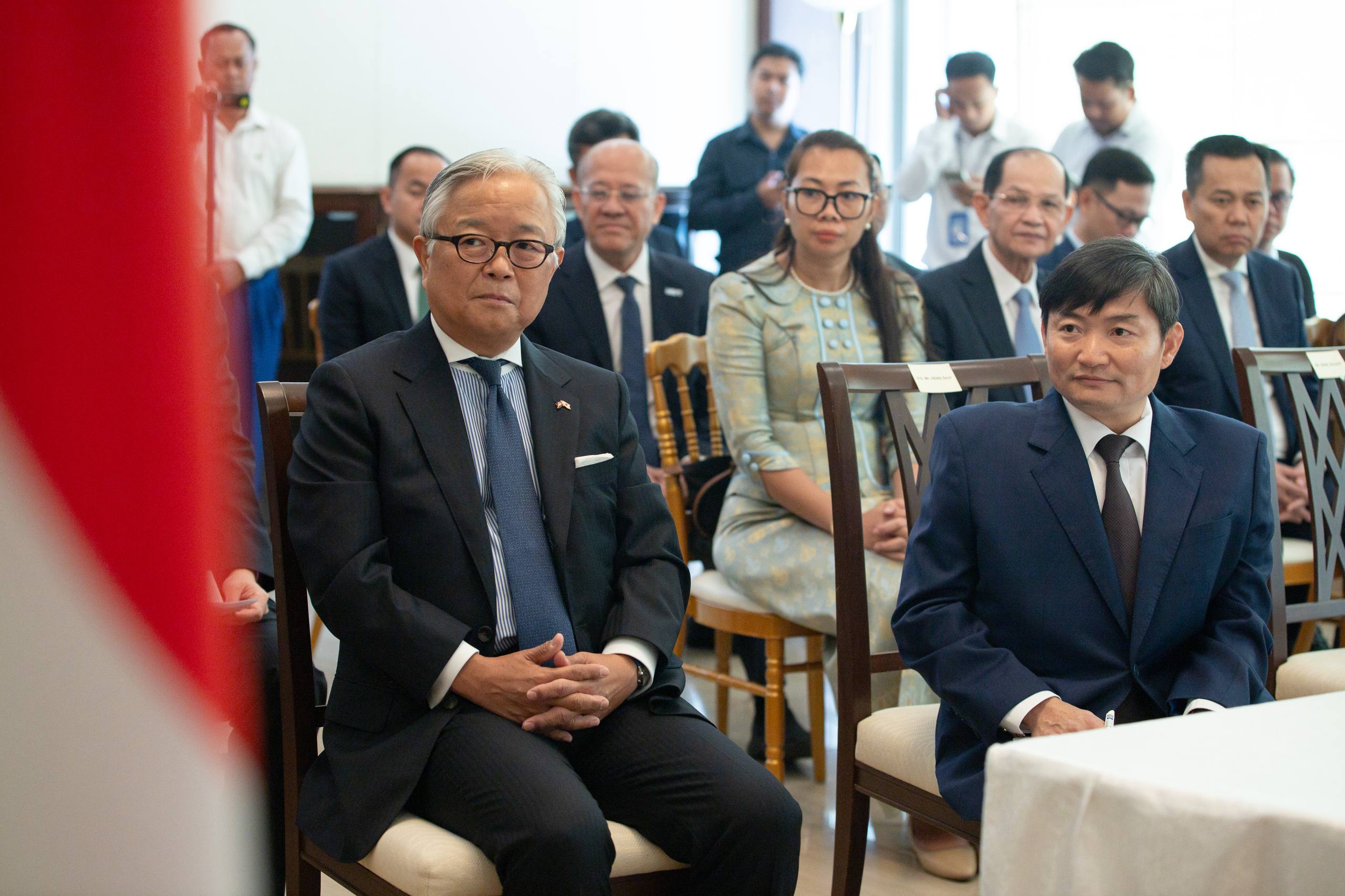 (ភ្នំពេញ)៖ ឯកឧត្តម ហេង សួរ រដ្ឋមន្ត្រីក្រសួងការងារ និងបណ្តុះបណ្តាលវិជ្ជាជីវៈ បានអញ្ជើញធ្វើជាសក្ខីភាពក្នុងពិធីចុះហត្ថលេខាលើគម្រោងស្តីពី «ការលើកកម្ពស់មុខរបរនិងការងារដល់ពលករចំណាកស្រុកត្រឡប់មកវិញ ដែលរងផលប៉ះពាល់ពីជម្លោះព្រំដែន» ដោយឯកឧត្ដម អ៊ូអិណុ អាត់ស៊ូស៊ី (UENO Atsushi) ឯកអគ្គរាជទូតវិសាមញ្ញ និងពេញសមត្ថភាពរបស់ប្រទេសជប៉ុនប្រចាំកម្ពុជា និងលោកស្រី ស៊ាវយៀន ឈាន (Xiaoyan Qian) នាយិកាការិយាល័យអង្គការ ILO ប្រចាំកម្ពុជា ឡាវ និងថៃ នាព្រឹកថ្ងៃទី១៨ ខែកុម្ភៈ ឆ្នាំ២០២៦ នៅស្ថានទូតជប៉ុន។