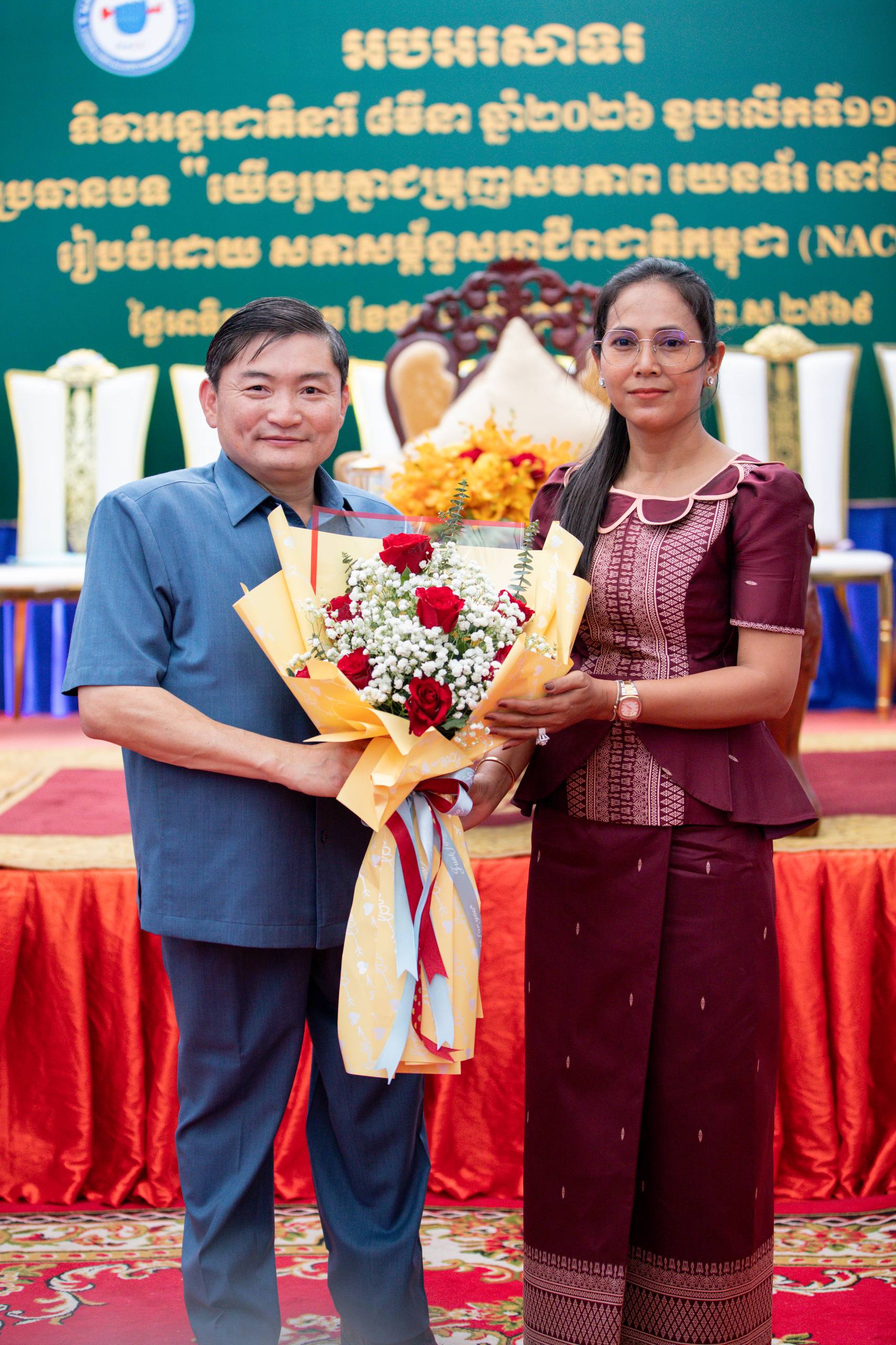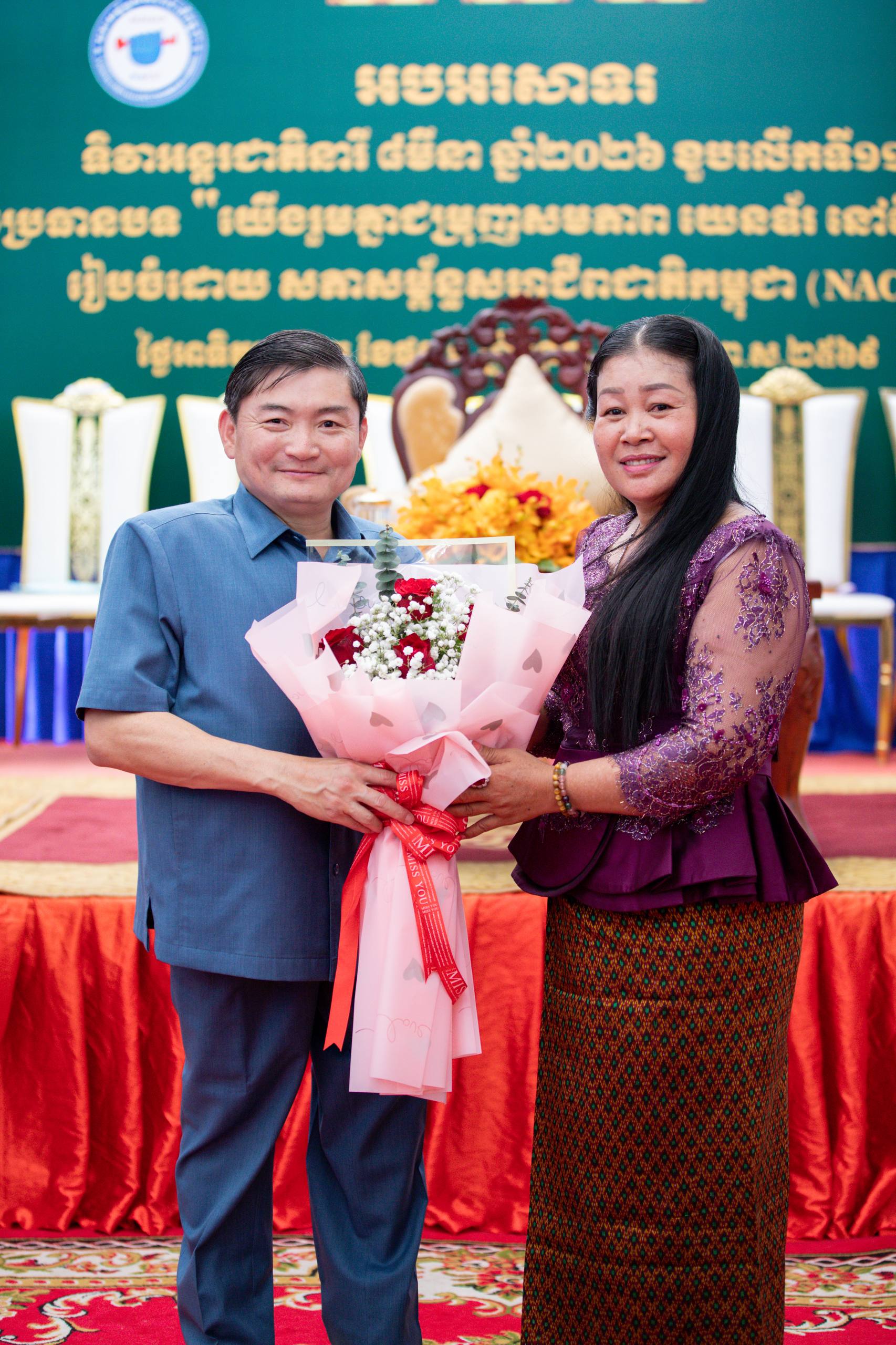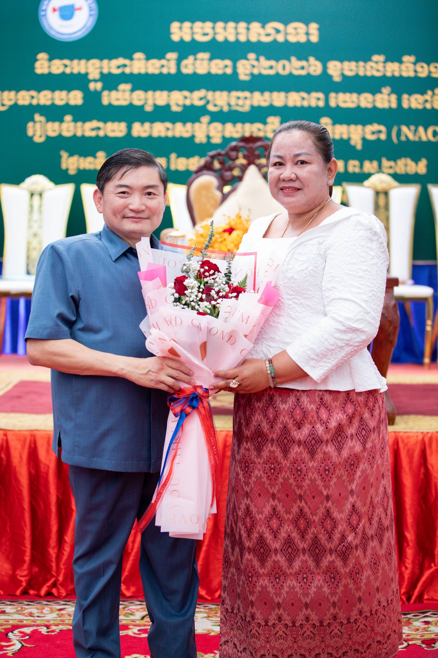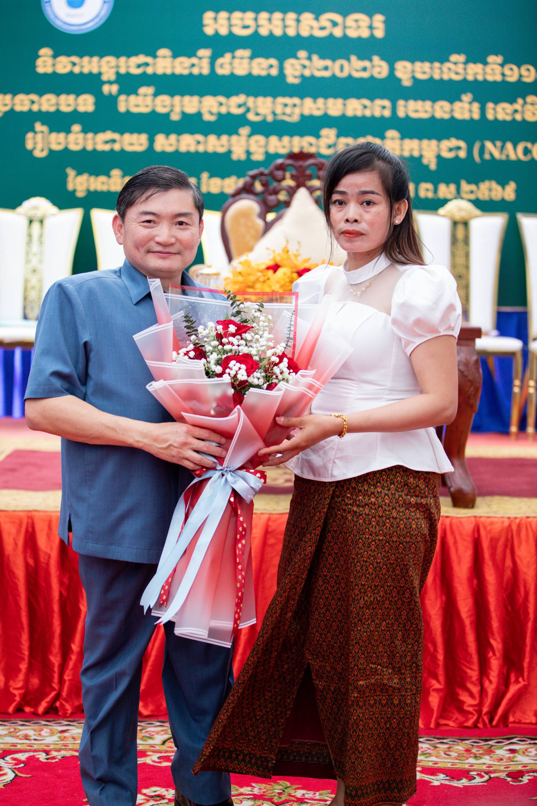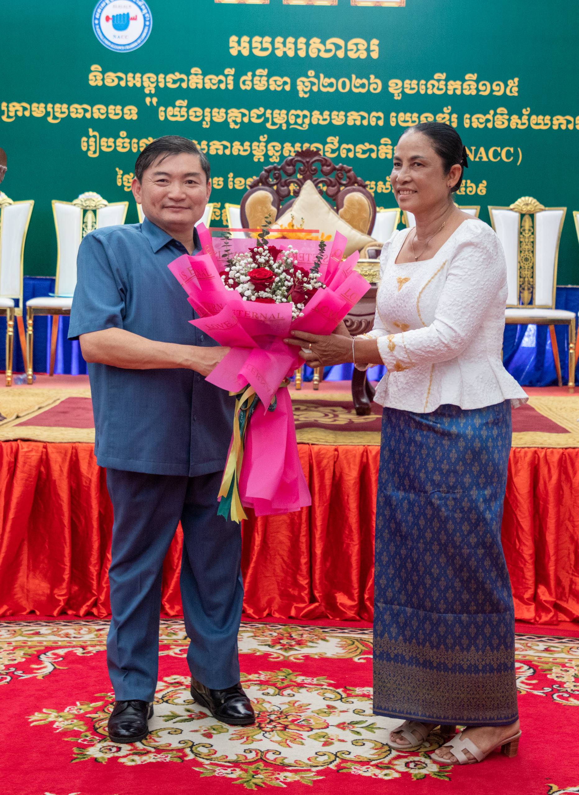 (រាជធានីភ្នំពេញ)៖ បន្ទាប់ពីបានអញ្ជើញចូលរួមក្នុងទិវាអបអរសាទរខួបលើកទី១១៥ នៃទិវាអន្តរជាតិនារី ៨មីនា កាលពីព្រឹកមិញ ដែលរៀបចំដោយក្រុមប្រឹក្សាសហជីពជាតិកម្ពុជា (CCNU) រួចមក នារសៀលថ្ងៃអាទិត្យ ទី៨ ខែមីនា ឆ្នាំ២០២៦នេះ ឯកឧត្តម ហេង សួរ រដ្ឋមន្ត្រីក្រសួងការងារ និងបណ្តុះបណ្តាលវិជ្ជាជីវៈ បានបន្តអញ្ជើញចូលរួមក្នុងពិធីអបអរសាទរខួបលើកទី១១៥ នៃទិវាអន្តរជាតិនារី ៨មីនា ដែលរៀបចំឡើងដោយសភាសម្ព័ន្ធសហជីពជាតិកម្ពុជា (NACC) ក្រោមប្រធានបទ «យើងរួមគ្នាជំរុញសមភាពយេនឌ័រ ក្នុងវិស័យការងារ» នៅទីស្នាក់ការកណ្ដាល។