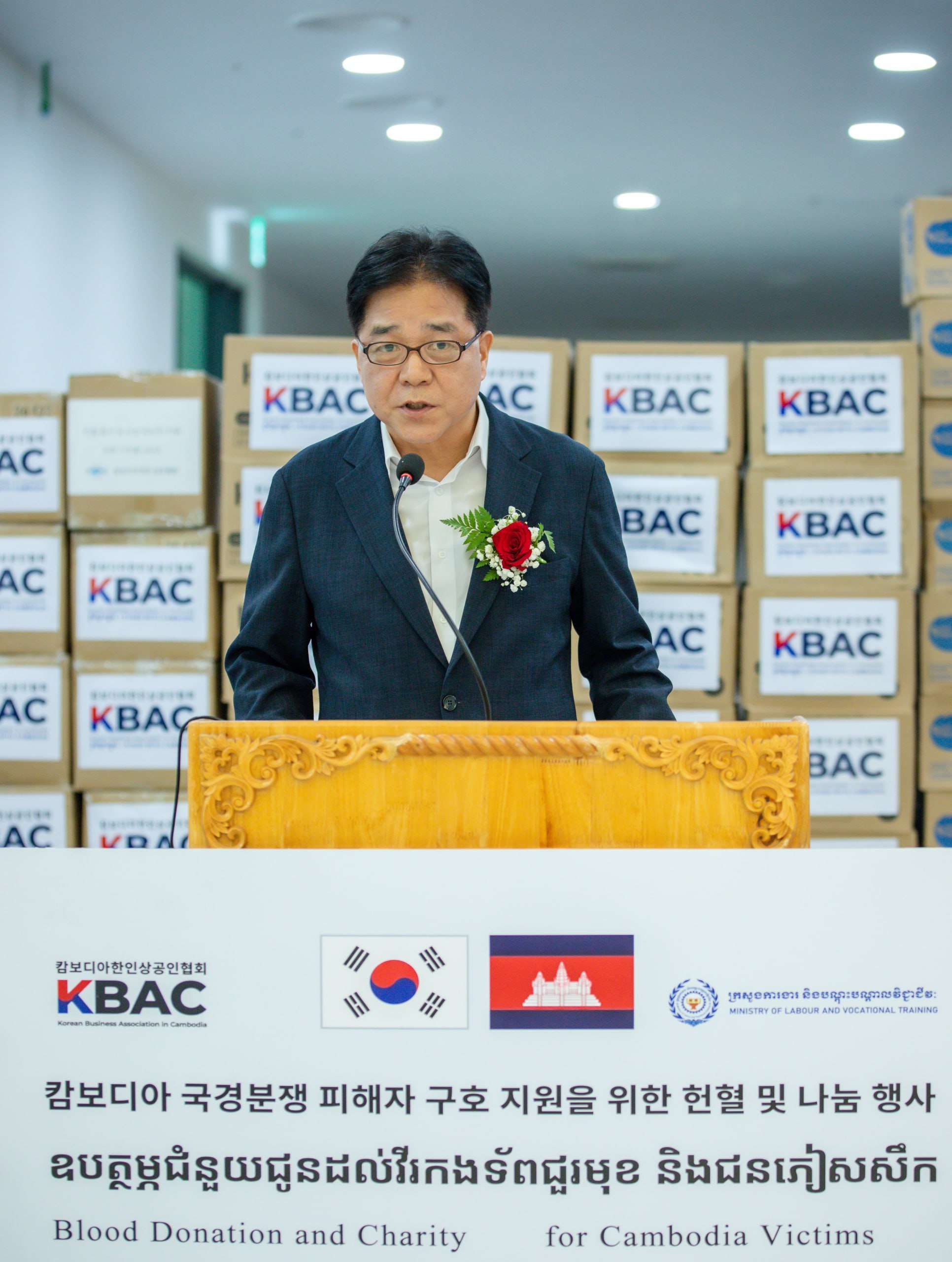 (ភ្នំពេញ)៖ នាព្រឹកថ្ងៃទី១១ ខែមីនា ឆ្នាំ២០២៦ ឯកឧត្តម ហេង សួរ រដ្ឋមន្រ្តីក្រសួងការងារ និងបណ្តុះបណ្តាលវិជ្ជាជីវៈ បានអញ្ជើញជាអធិបតីដ៏ខ្ពង់ខ្ពស់ក្នុង ”ព្រឹត្តិការណ៍សប្បុរសធម៌សម្រាប់ជួយដល់ជនរងគ្រោះកម្ពុជានៅតាមព្រំដែន” របស់សមាគមធុរកិច្ចកូរ៉េនៅកម្ពុជា (KBAC) នៅអគារ ប៊ូយុងថោន សម្រាប់ផ្តល់ជាអំណោយជូនដល់បងប្អូនជនភៀសសឹក និងវីរកងទ័ពជួរមុខ ដោយមានការអញ្ជើញចូលរួមពី ថ្នាក់ដឹកនាំក្រសួង សមាជិកសមាគមធុរកិច្ចកូរ៉េនៅកម្ពុជា ពលករខ្មែរ និងប្រជាពលរដ្ឋជាច្រើនរូប។