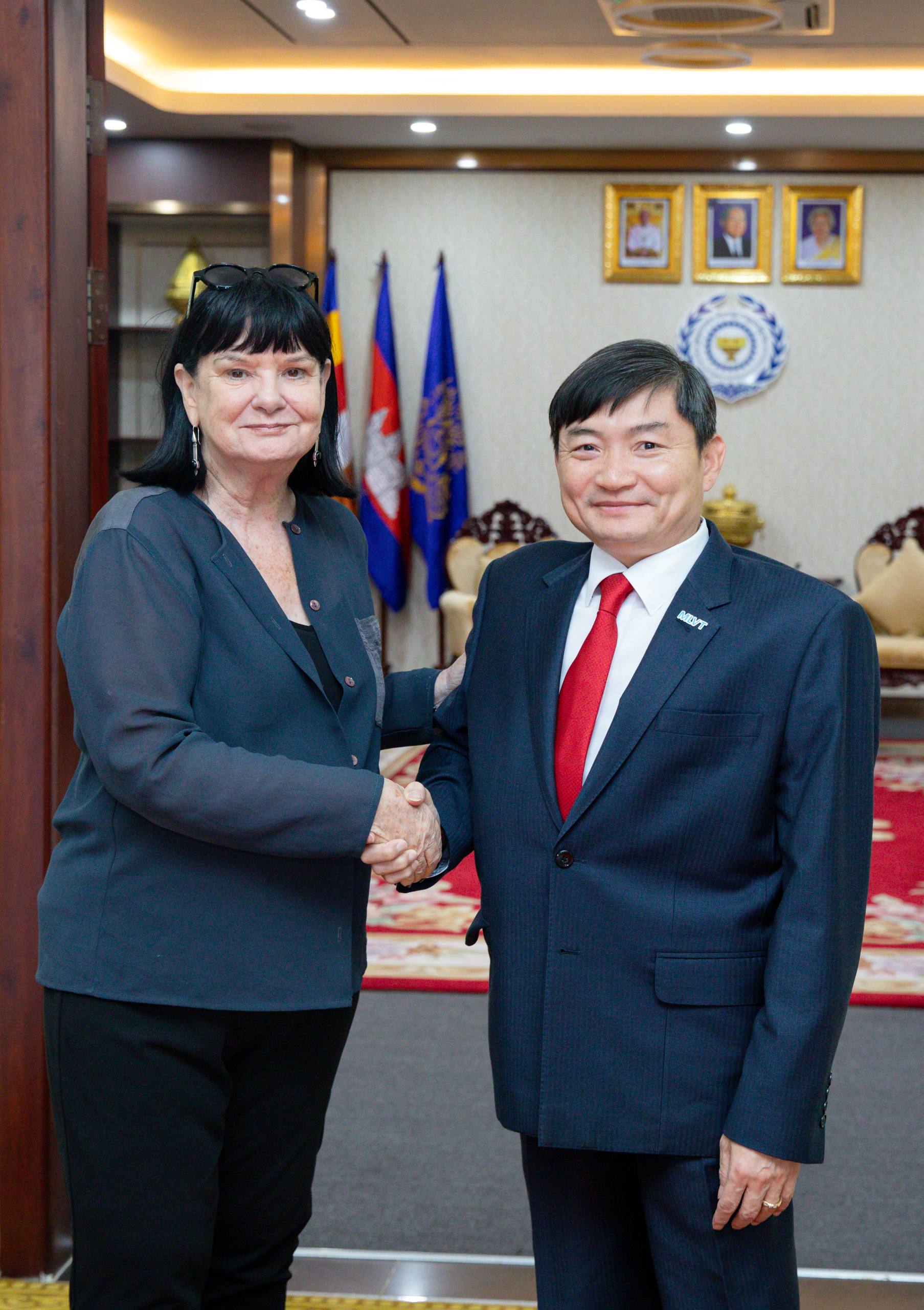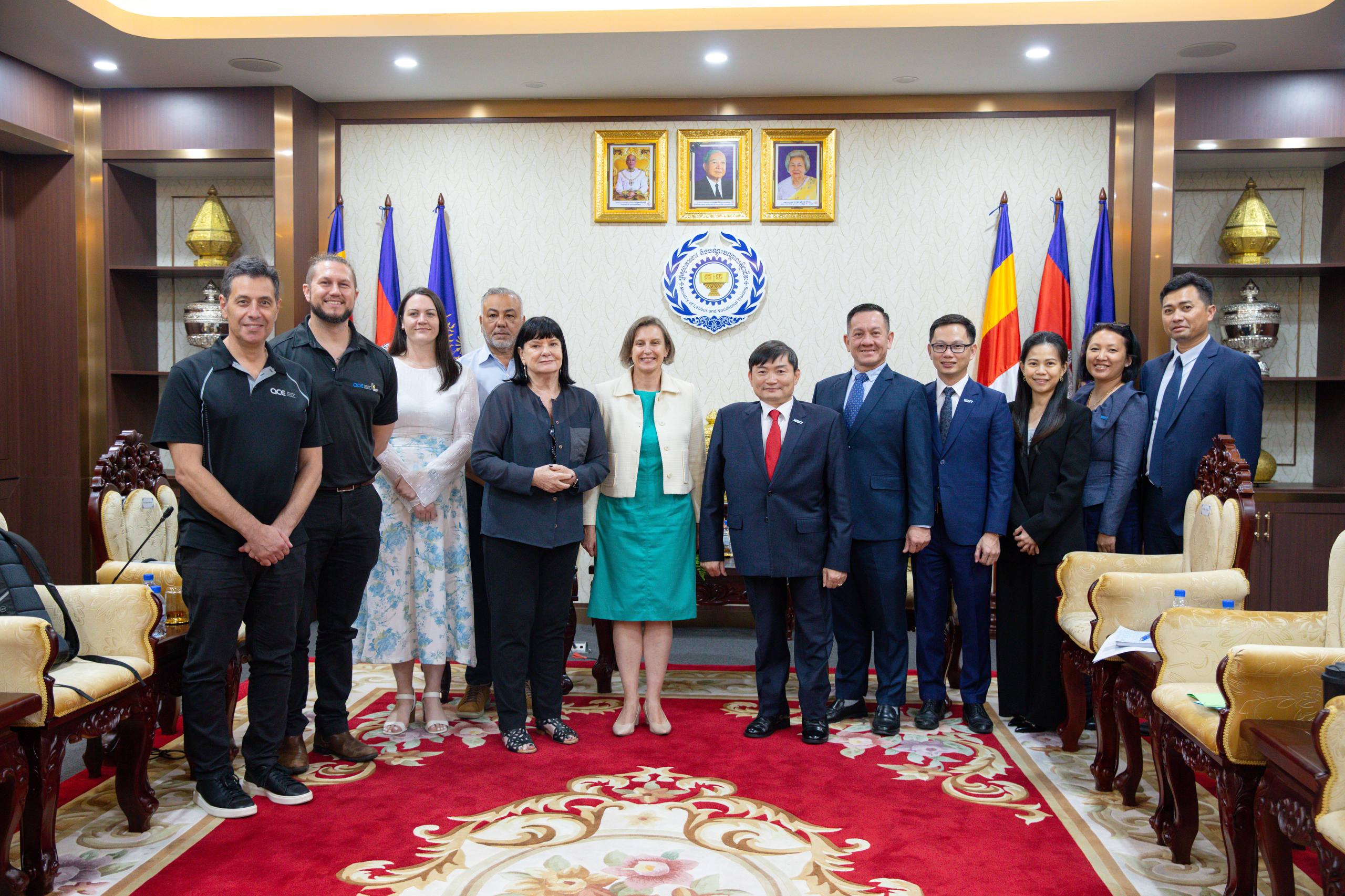 (រាជធានីភ្នំពេញ)៖ បន្ទាប់ពីបានខិតខំរួមគ្នាសម្រេចបាននូវការដាក់ឱ្យដំណើរការជាផ្លូវការនូវមជ្ឈមណ្ឌលឧត្តមភាពយានយន្តកម្ពុជា (ACE Cambodia) ជាលើកដំបូង ដែលជាផ្លែផ្កានៃកិច្ចសហប្រតិបត្តិការកម្ពុជា-អូស្ត្រាលីលើការអភិវឌ្ឍជំនាញនៅកម្ពុជាកាលពីម្សិលមិញរួចមក, នារសៀលថ្ងៃអង្គារ ទី១៧ ខែមីនា ឆ្នាំ២០២៦ នេះ ឯកឧត្តម ហេង សួរ រដ្ឋមន្ត្រីក្រសួងការងារ និងបណ្ដុះបណ្ដាលវិជ្ជាជីវៈ បានទទួលជួបសម្ដែងការគួរសម និងពិភាក្សាការងារជាមួយ លោកស្រី ប្រីជែត ខូលៀរ (Bridget Collier) ភារធារីស្ថានទូតអូស្ត្រាលីប្រចាំកម្ពុជា និង លោកស្រី សារ៉ន ប៊ូរ៉ូ (Sharan Burrow) ប្រធានក្រុមប្រឹក្សានៃវិទ្យាស្ថាន Bendigo Kangan (BKI) នៅទីស្តីការក្រសួង ដើម្បីពិភាក្សាផ្លាស់ប្តូរយោបល់ក្នុងការស្វែងរកឱកាសពង្រីកកិច្ចសហប្រតិបត្តិការថ្មីៗបន្ថែមទៀត ឆ្លើយតបទៅនឹងតម្រូវការទីផ្សារការងារ ដែលវិស័យឧស្សាហកម្មនៅកម្ពុជាកំពុងមានតម្រូវការខ្ពស់។