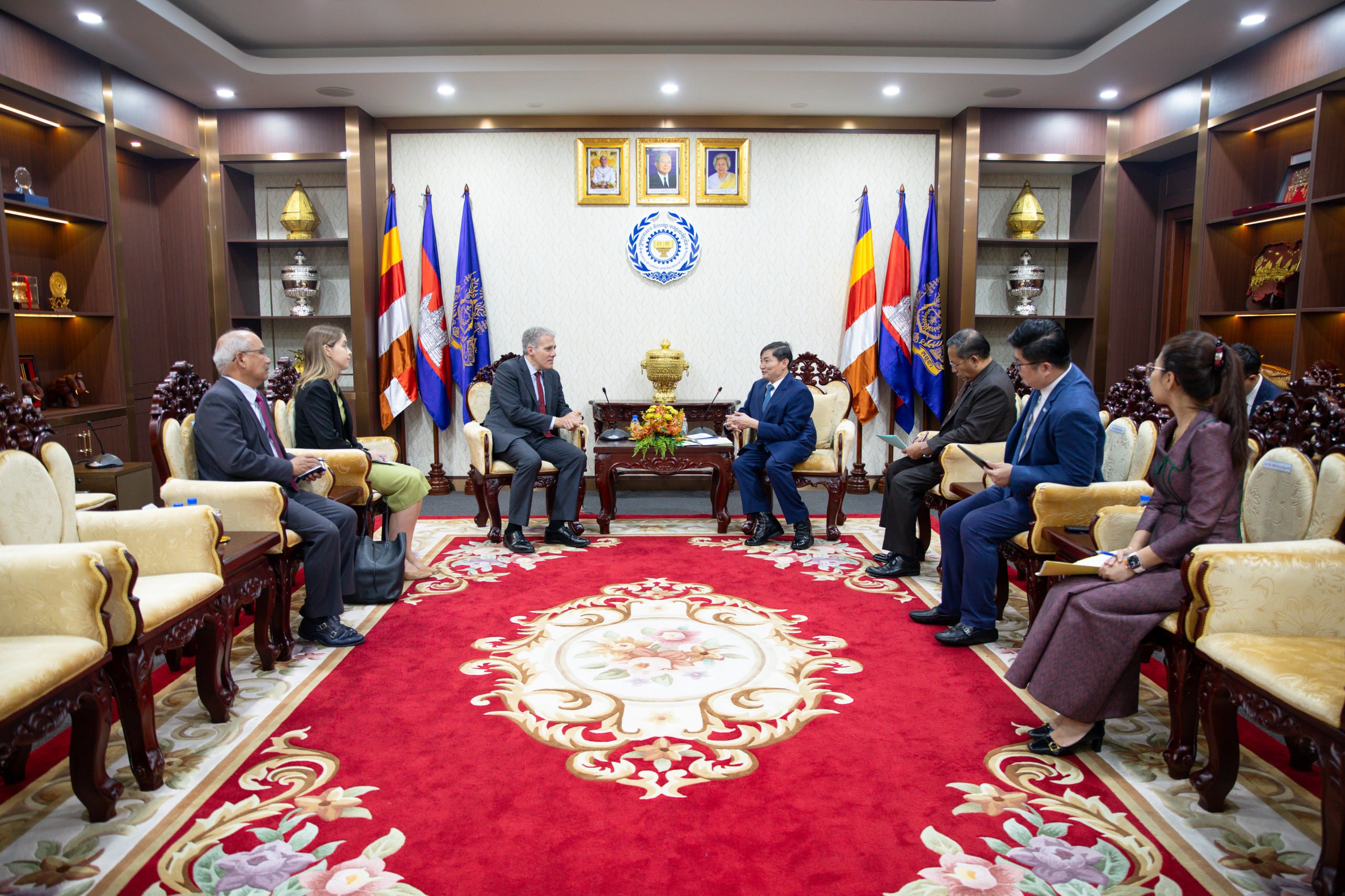 ក្នុងឱកាសនៃជំនួបនោះ ឯកឧត្តមរដ្ឋមន្ត្រី បានសម្តែងនូវការស្វាគមន៍យ៉ាងកក់ក្តៅចំពោះឯកឧត្តមឯកអគ្គរដ្ឋទូត និងសហការី ព្រមទាំងបានអបអរសាទរយ៉ាងជ្រាលជ្រៅចំពោះការបើកដំណើរការស្ថានទូតកាណាដានៅកម្ពុជាឡើងវិញ។ ឯកឧត្តមបានគូសបញ្ជាក់ថា នេះគឺជាសក្ខីភាពឆ្លុះបញ្ចាំងពីវឌ្ឍនភាពនៃទំនាក់ទំនងការទូតដ៏រឹងមាំ និងជិតស្និទ្ធរវាងប្រទេសទាំងពីរ។