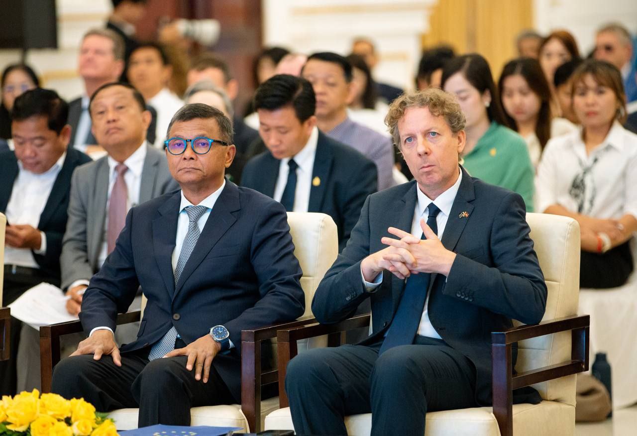 (ភ្នំពេញ)៖ ឯកឧត្តម ហេង សួរ រដ្ឋមន្ត្រីក្រសួងការងារ និងបណ្តុះបណ្តាលវិជ្ជាជីវៈ អញ្ជើញចូលរួមជាគណៈអធិបតីក្នុងកិច្ចសន្ទនារវាងសាកលវិទ្យាល័យ វិទ្យាស្ថានស្រាវជ្រាវ និងវិស័យឯកជននៅកម្ពុជា និងអឺរ៉ុប ក្រោមអធិបតីភាពដ៏ខ្ពង់ខ្ពស់ ឯកឧត្តមបណ្ឌិតសភាចារ្យ ហង់ជួន ណារ៉ុន ឧបនាយករដ្ឋមន្រ្តី រដ្ឋមន្ត្រីក្រសួងអប់រំ យុវជន និងកីឡា នាព្រឹកថ្ងៃទី១២ ខែវិច្ឆិកា ឆ្នាំ២០២៥ នៅសាលបុរីកោះពេជ្រ។ ក្នុងនោះក៏មានការអញ្ជើញចូលរួមជាគណៈអធិបតីពី ឯកឧត្តម ហែម វណ្ណឌី រដ្ឋមន្រ្តីក្រសួងឧស្សាហកម្ម វិទ្យាសាស្ត្រ បច្ចេកវិទ្យា និងនវានុវត្តន៍ និង ឯកឧត្តម Igor Driesmans ឯកអគ្គរដ្ឋទូតសហភាពអឺរ៉ុបប្រចាំប្រទេសកម្ពុជាផងដែរ។