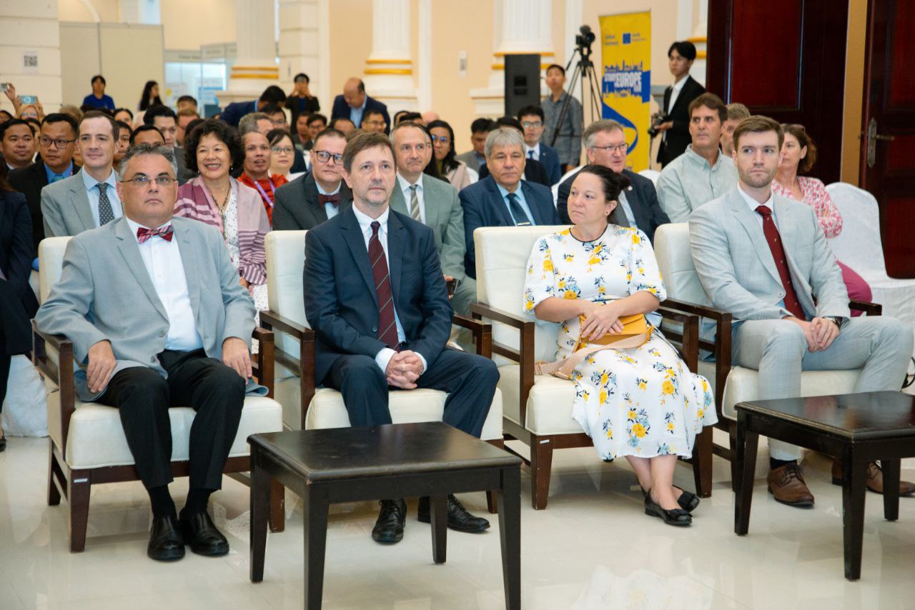 ថ្លែងទៅកាន់អង្គពិធី ឯកឧត្តមរដ្ឋមន្ត្រីបានគូសបញ្ជាក់ពីសារសំខាន់នៃកិច្ចសន្ទនារវាងសាកលវិទ្យាល័យ វិទ្យាស្ថានស្រាវជ្រាវ និងវិស័យឯកជននៅកម្ពុជា និងអឺរ៉ុបនាពេលនេះ ដែលជាច្រកដ៏ចាំបាច់ក្នុងការផ្សារភ្ជាប់គ្រឹះស្ថានសិក្សាពីកម្ពុជាទៅកាន់អឺរ៉ុប។ ជាមួយគ្នានេះ ឯកឧត្តមរដ្ឋមន្ត្រីបានកត់សម្គាល់ថា តាមរយៈអាហារូបករណ៍របស់សហភាពអឺរ៉ុប បញ្ញវន្តកម្ពុជាជាច្រើនដែលមានទាំងសាស្ត្រាចារ្យ អ្នកសិក្សាស្រាវជ្រាវ វិស្វករ និងអ្នកបច្ចេកទេសរាប់រយនាក់ ត្រូវបានបណ្តុះបណ្តាលដើម្បីក្លាយជាធនធានមនុស្សក្នុងការជួយអភិវឌ្ឍសង្គមកម្ពុជា ក្នុងក្របខណ្ឌវិស័យអប់រំចំណេះដឹងទូទៅ ការបណ្តុះបណ្តាលជំនាញបច្ចេកទេស បច្ចេកវិទ្យា និងមុខជំនួញផ្សេងៗ។