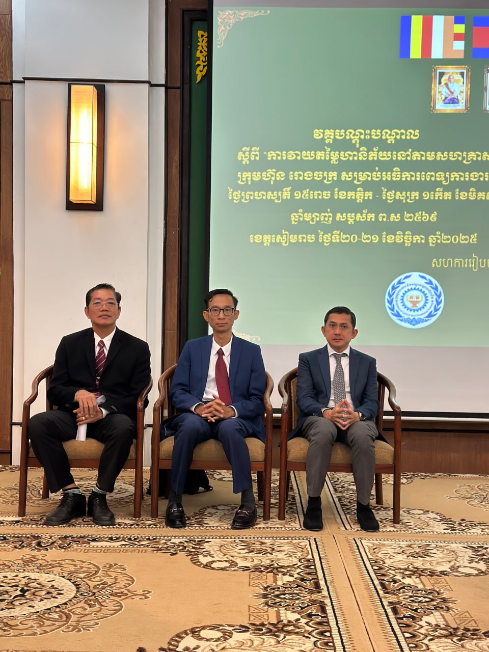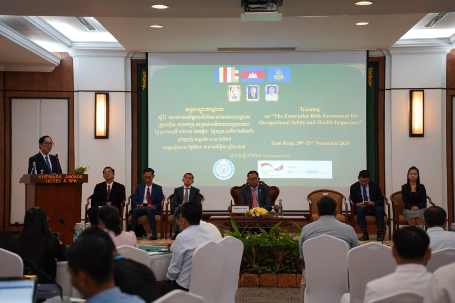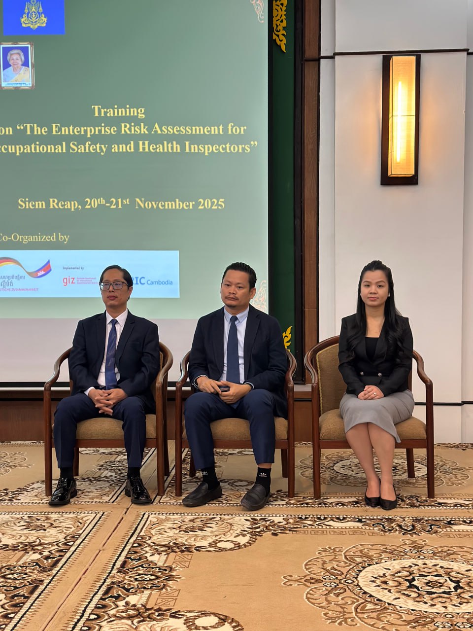 (ខេត្តសៀមរាប)៖ នាថ្ងៃទី១៨-១៩ ខែវិច្ឆិកា ឆ្នាំ២០២៥ ឯកឧត្តម លឹម ស៊ុយហុង អនុរដ្ឋលេខាធិការ តំណាងដ៏ខ្ពង់ខ្ពស់ ឯកឧត្តម ហេង សួរ រដ្ឋមន្រ្តីក្រសួងការងារ និងបណ្តុះបណ្តាលវិជ្ជាជីវៈ បានអញ្ជើញជាអធិបតីក្នុងពិធីបើក វគ្គបណ្តុះបណ្តាលស្តីពីការវាយតម្លៃហានិភ័យនៅតាមសហគ្រាស ក្រុមហ៊ុន រោងចក្រ សម្រាប់អធិការពេទ្យការងារ នៃក្រសួងការងារ និងបណ្តុះបណ្តាលវិជ្ជាជីវៈ ដល់មន្ត្រីរាជការ នៃក្រសួងការងារ និងបណ្តុះបណ្តាលវិជ្ជាជីវៈ និងមន្ទីរការងាររាជធានី ខេត្ត ចំនួន៩ រួមមាន មន្ទីរការងារ និងបណ្តុះបណ្តាលវិជ្ជាជីវៈ រាជធានីភ្នំពេញ ខេត្តកំពង់ចាម ខេត្តត្បូងឃ្មុំ ខេត្តកំពង់ធំ ខេត្តឧត្តរមានជ័យ ខេត្តបាត់ដំបង ខេត្តសៀមរាប ខេត្តកំពង់ឆ្នាំង និងខេត្តបន្ទាយមានជ័យ សរុបចំនួន ៣០នាក់។