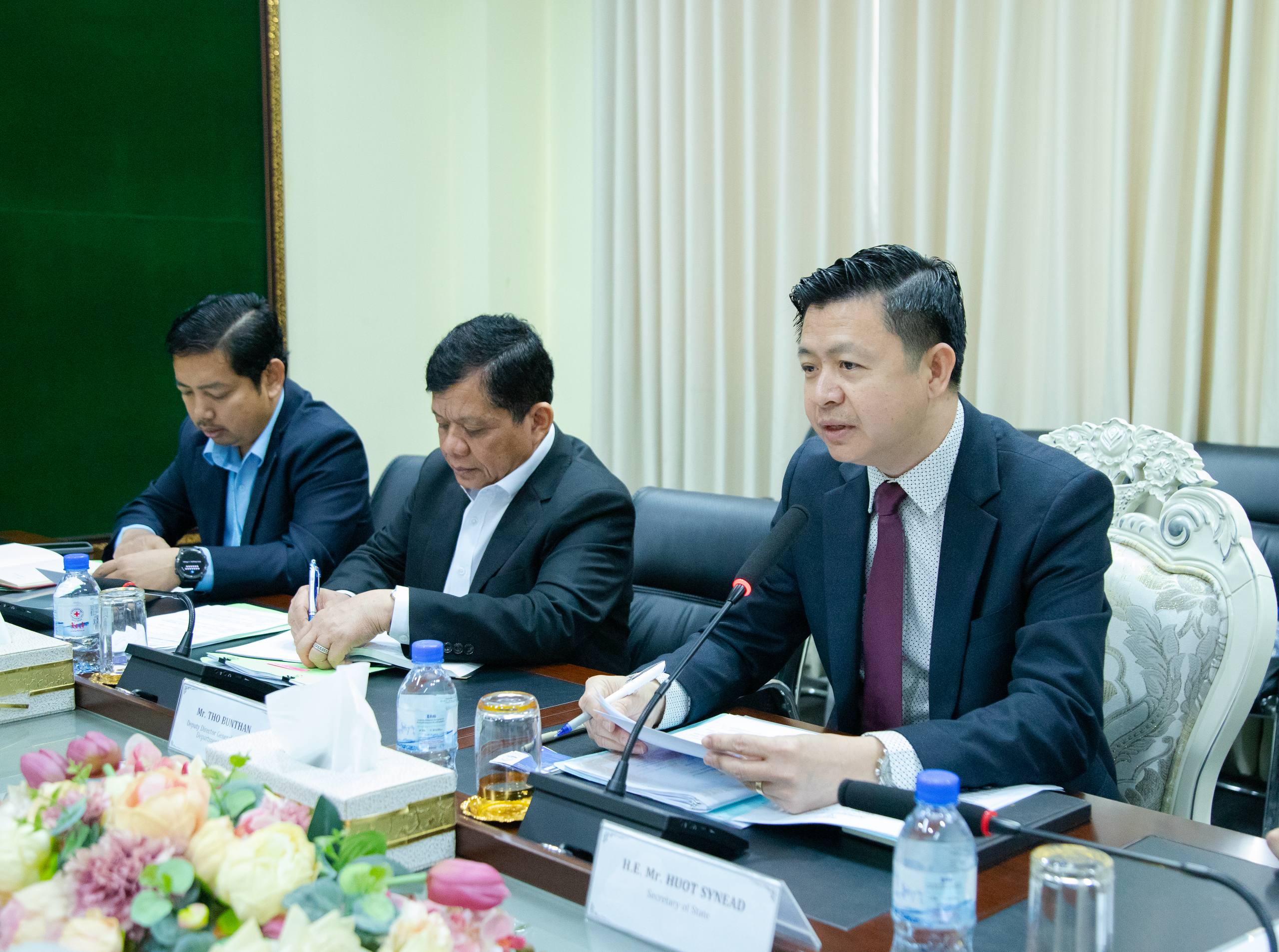 (ភ្នំពេញ)៖ ឯកឧត្តម ហួត ស៊ីនាដ រដ្ឋលេខាធិការ ក្រសួងការងារ និងបណ្តុះបណ្តាលវិជ្ជាជីវៈ ទទួលជួបសម្តែងការគួរសម និងពិភាក្សាការងារជាមួយលោក សាសាហារ៉ា កេនជិ (SASAHARA Kenji) នាយកសាលាអន្តរជាតិជប៉ុន CIESF Leaders Academy (CLA) និងសហការី នាព្រឹកថ្ងៃទី២៨ ខែមករា ឆ្នាំ២០២៦ នាទីស្ដីការក្រសួង ដើម្បីពង្រឹងកិច្ចសហការលើផ្នែកបណ្តុះបណ្តាល និងការអនុវត្តបទប្បញ្ញត្តិការងារ។