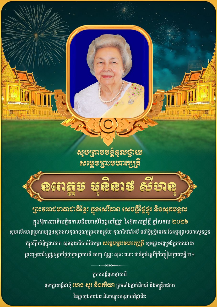 សារលិខិតថ្វាយព្រះពរ សម្តេចព្រះមហាក្សត្រី នរោត្តម មុនិនាថ សីហនុ ព្រះវររាជមាតាជាតិខ្មែរ ក្នុងសេរីភាព សេចក្តីថ្លៃថ្នូរ និងសុភមង្គល ក្នុងឱកាសចូលឆ្នាំថ្មី ឆ្នាំសកល ២០២៦