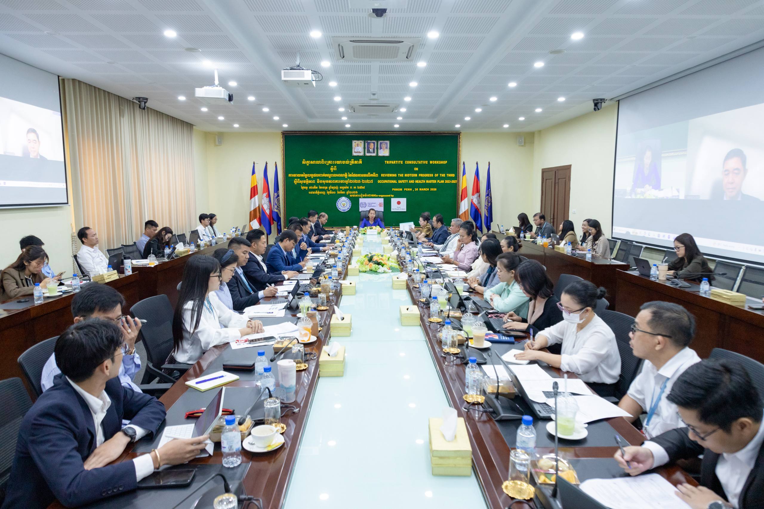 (ភ្នំពេញ)៖ នៅព្រឹកថ្ងៃចន្ទ ទី៣០ ខែមីនា ឆ្នាំ២០២៦ លោកជំទាវ សុវណ្ណ វណ្ណារតន៍ រដ្ឋលេខាធិការប្រចាំការ តំណាងដ៏ខ្ពស់ខ្ពង់របស់ឯកឧត្តម ហេង សួរ រដ្ឋមន្ត្រី ក្រសួងការងារ និងបណ្តុះបណ្តាលវិជ្ជាជីវៈបានអញ្ជើញជាអធិបតីក្នុងសិក្ខាសាលាពិគ្រោះយោបល់ត្រីភាគី ដើម្បីវាយតម្លៃលទ្ធផលពាក់កណ្តាលអាណត្តិនៃការអនុវត្តផែនការមេលើកទី៣ ស្តីពីសុវត្ថិភាព និងសុខភាពការងារ ឆ្នាំ២០២៣-២០២៧។
