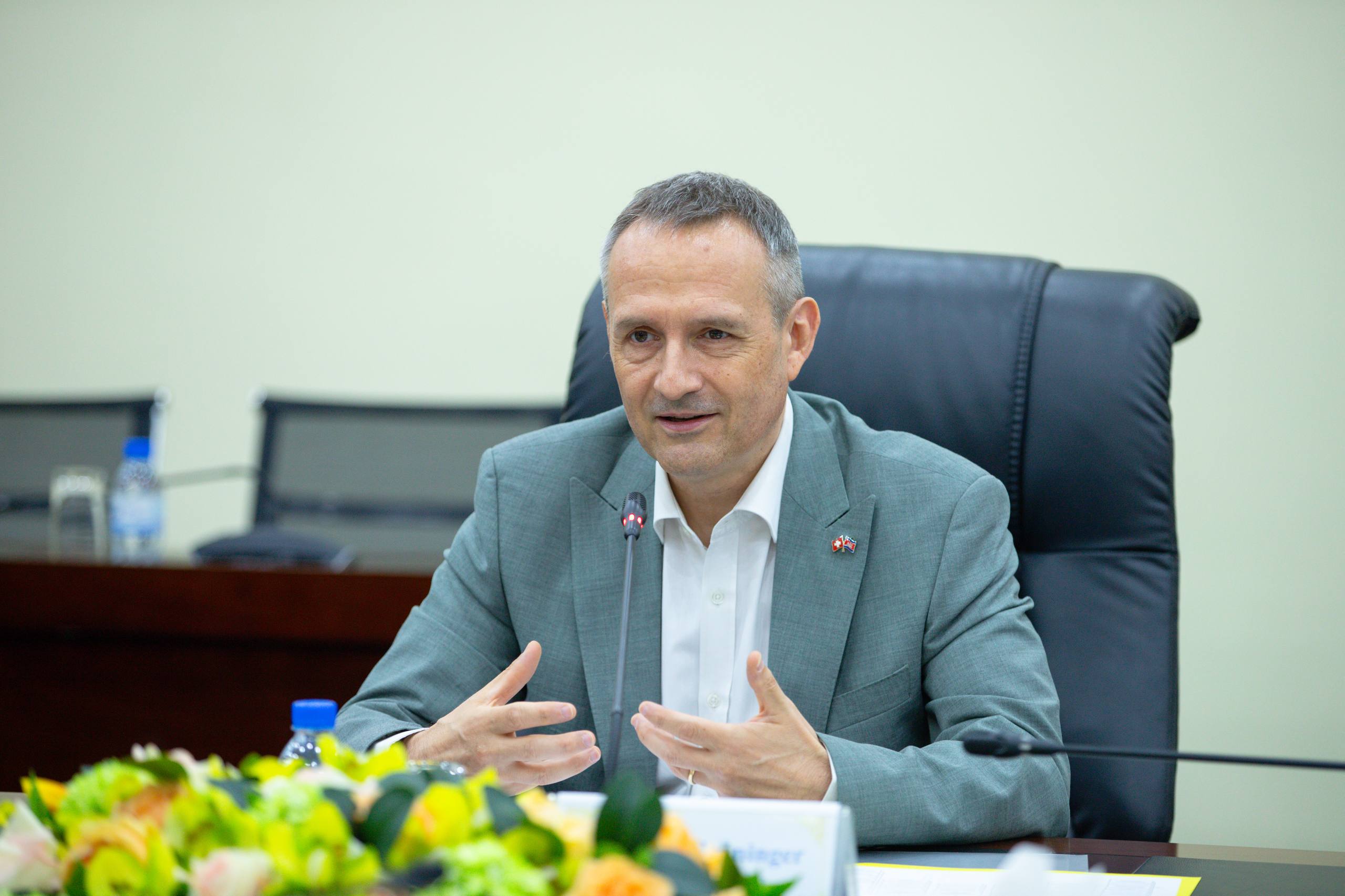 ជាការឆ្លើយតប លោក Reto Grüninger បានថ្លែងអំណរគុណ និងកោតសរសើរចំពោះកិច្ចសហប្រតិបត្តិការរវាងភាគីទាំងពីរ ក៏ដូចជា វឌ្ឍនភាពការងារក្នុងការលើកកម្ពស់ជំនាញកម្លាំងពលកម្មនៅកម្ពុជា ដោយលោកគូសបញ្ជាក់ថា SDC តែងតែព្យាយាមធ្វើឱ្យមានភាពបត់បែន ហើយពិតជាបន្តការគាំទ្រនូវអ្វីដែលដែលអាចធ្វើឱ្យកាន់តែមានភាពស៊ីជម្រៅ និងការសម្របសម្រួលដែលមានន័យកាន់តែល្អសម្រាប់ភាគីទាំងពីរ។ SDC ពិតជាចាប់អារម្មណ៍យ៉ាងខ្លាំងក្នុងការធ្វើឱ្យអ្វីៗដំណើរ និងក្លាយជាប្រយោជន៍ដល់ប្រជាជន ជាពិសេសយុវជនកម្ពុជា ដែលត្រូវការការអប់រំបច្ចេកទេស និងវិជ្ជាជីវៈ។