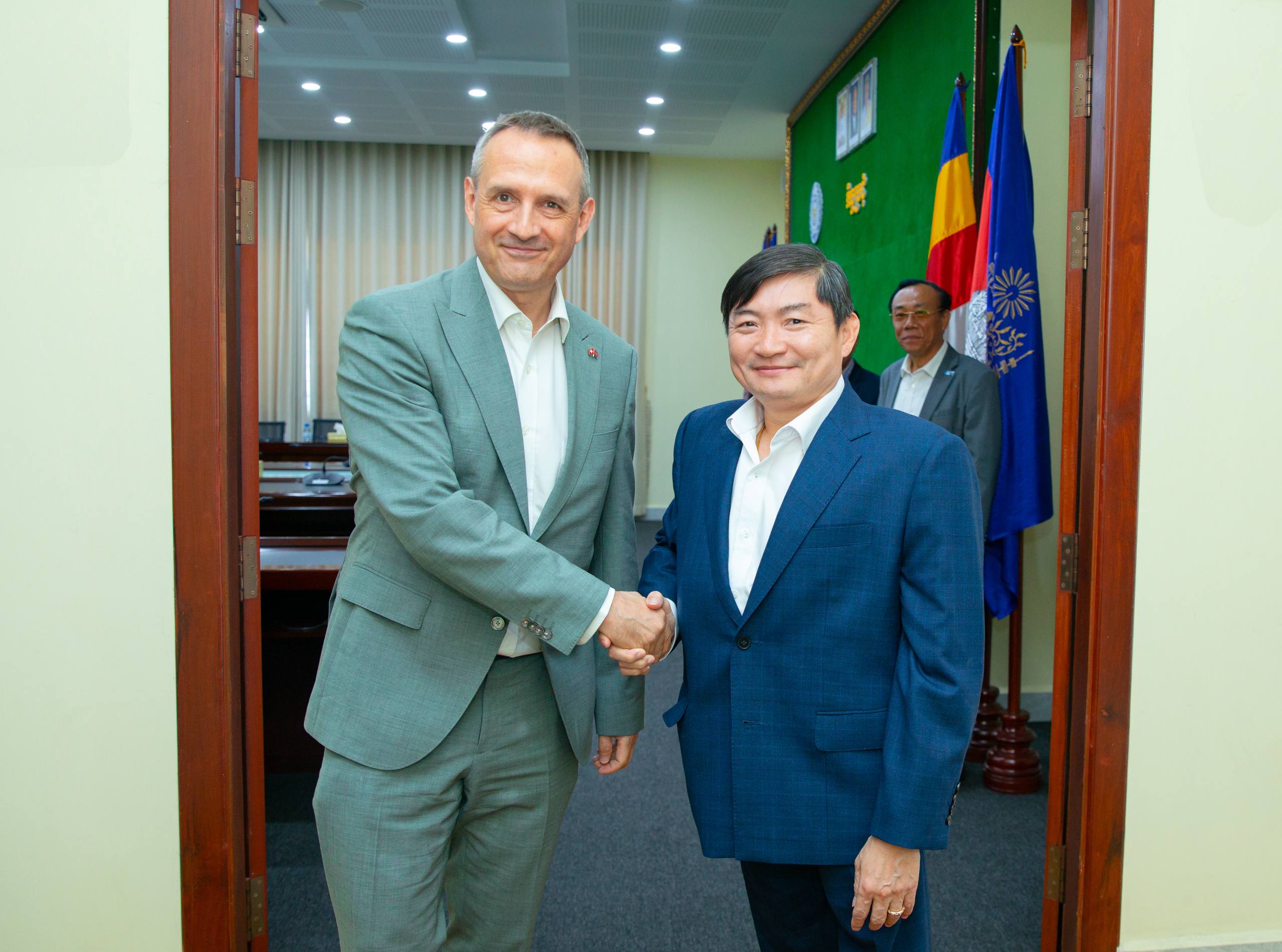 (ភ្នំពេញ)៖ ឯកឧត្តម ហេង សួរ រដ្ឋមន្ត្រីក្រសួងការងារ និងបណ្ដុះបណ្ដាលវិជ្ជាជីវៈ បានទទួលជួបសម្តែងការគួរសម និងពិភាក្សាការងារជាមួយលោក Reto Grüninger នាយកទីភ្នាក់ងារស្វីសសម្រាប់ការអភិវឌ្ឍនិងកិច្ចសហប្រតិបត្តិការ (SDC) នៅកម្ពុជា នារសៀលថ្ងៃទី៣០ ខែមីនា ឆ្នាំ២០២៦ នៅទីស្តីការក្រសួង ដើម្បីធ្វើបច្ចុប្បន្នភាពពីវឌ្ឍនភាពនៃកិច្ចសហប្រតិបត្តិការ និងផ្លាស់ប្តូរយោបល់លើការបន្តកិច្ចគាំទ្រលើអភិបាលកិច្ច និងការសម្របសម្រួលលើប្រព័ន្ធ TVET នៅកម្ពុជា។
