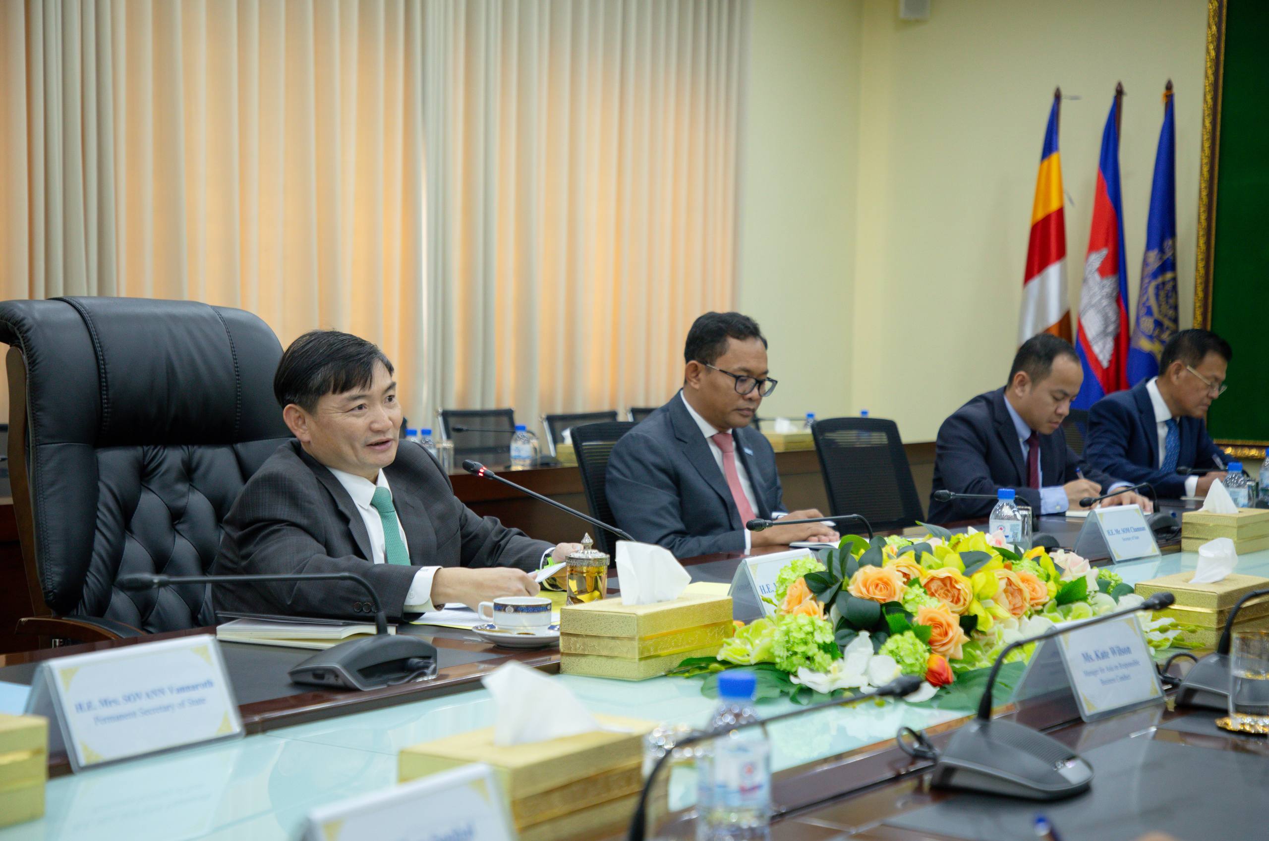 (ភ្នំពេញ)៖ ឯកឧត្តម ហេង សួរ រដ្ឋមន្ត្រីក្រសួងការងារ និងបណ្ដុះបណ្ដាលវិជ្ជាជីវៈ បានទទួលជួបសម្ដែងការគួរសម និងពិភាក្សាការងារជាមួយលោកស្រី Kate Wilson ប្រធានកម្មវិធីប្រចាំតំបន់អាស៊ី នៃមជ្ឈមណ្ឌលសម្រាប់អាជីវកម្មប្រកបដោយការទទួលខុសត្រូវរបស់អង្គការសម្រាប់កិច្ចសហប្រតិបត្តិការ និងអភិវឌ្ឍន៍សេដ្ឋកិច្ច (OECD) នាព្រឹកថ្ងៃទី២ ខែមីនា ឆ្នាំ២០២៦ នៅទីស្តីការក្រសួង ដើម្បីស្វែងរកឱកាសពង្រឹងកិច្ចសហប្រតិបត្តិការ និងពិភាក្សាលើយុទ្ធសាស្ត្រនៃការអនុវត្តអាជីវកម្មប្រកបដោយការទទួលខុសត្រូវ (RBC) ដែលស្របតាមអាទិភាពគោលនយោបាយបច្ចុប្បន្នរបស់ក្រសួងការងារ និងបណ្តុះបណ្តាលវិជ្ជាជីវៈ។