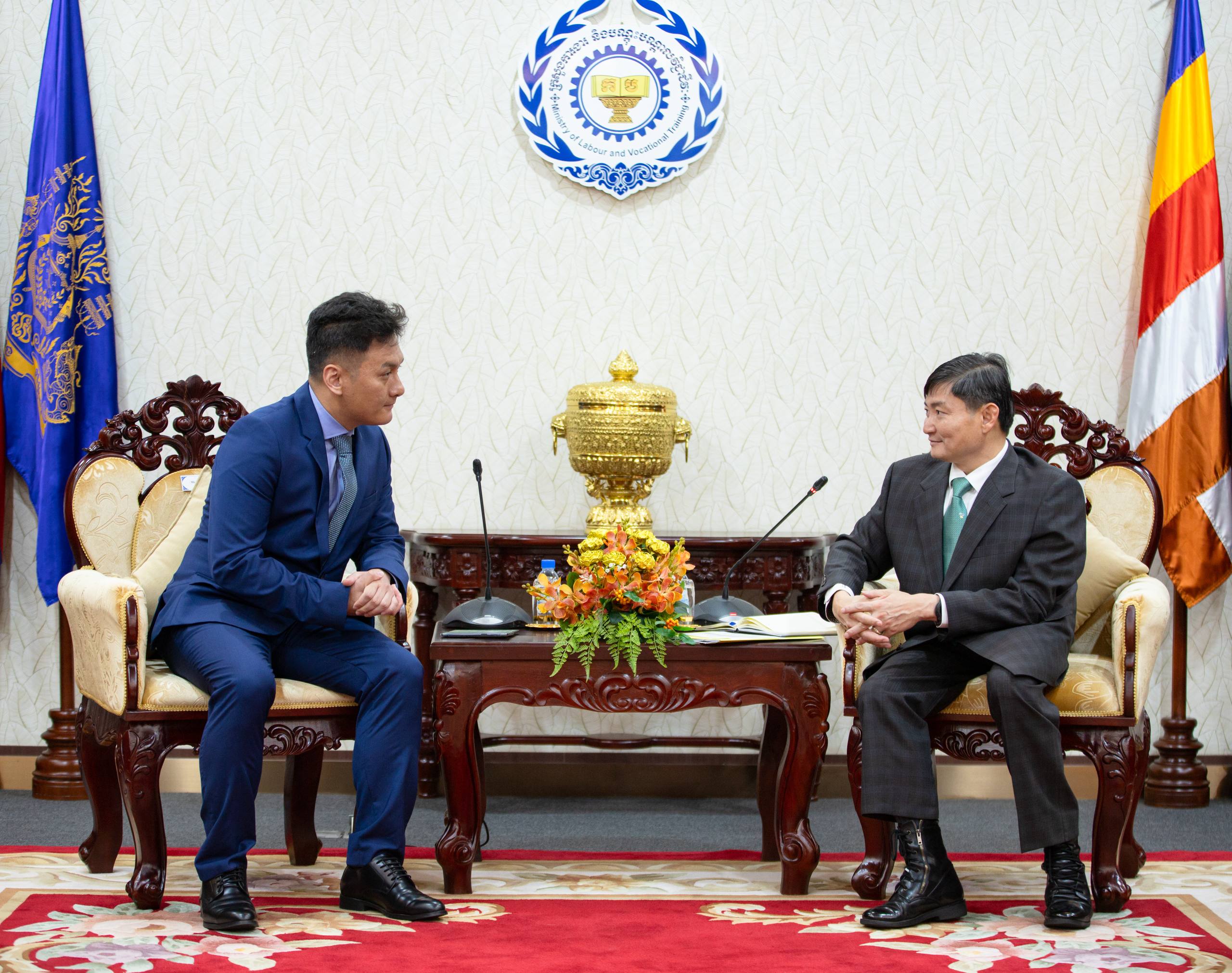 (ភ្នំពេញ)៖ នាព្រឹកថ្ងៃទី២ ខែមីនា ឆ្នាំ២០២៦ នៅទីស្តីការក្រសួង ឯកឧត្ដម ហេង សួរ រដ្ឋមន្ត្រីក្រសួងការងារ និងបណ្ដុះបណ្ដាលវិជ្ជាជីវៈ បានជួបពិភាក្សាការងារជាមួយលោក Xie Peilin (ស្ស៉ី ផីលីន) អគ្គនាយកក្រុមហ៊ុន ខ្មែរ ហ្វេមីលី ប៊ីហ្សនេស មេនេចម៉ិន ឯ.ក. (Khmer Family Business Management Co., Ltd.) និងបានចុះហត្ថលេខាលើអនុស្សរណៈនៃការយោគយល់គ្នា (MoU) ស្ដីពីការលើកកម្ពស់សុវត្ថិភាព និងសុខភាពការងារ តាមរយៈកិច្ចសហប្រតិបត្តិការបណ្ដុះបណ្ដាល ក្នុងគោលបំណងលើកកម្ពស់ការយល់ដឹងផ្នែកសុវត្ថិភាព និងសុខភាពការងារ (OSH) ដល់កម្មករនិយោជិត។