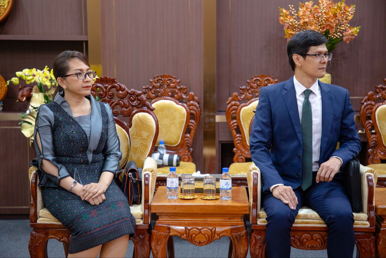 (ភ្នំពេញ)៖ ឯកឧត្តម ហេង សួរ រដ្ឋមន្ត្រីក្រសួងការងារ និងបណ្តុះបណ្តាលវិជ្ជាជីវៈ នៅថ្ងៃទី៤ ខែតុលា ឆ្នាំ២០២៣ បានជួបពិភាក្សាការងារជាមួយគណៈប្រតិភូសហព័ន្ធនិយោជក និងសមាគមពាណិជ្ជកម្មកម្ពុជាដែលដឹកនាំដោយលោកឧកញ៉ាសុខ ពិសិដ្ឋ នៅទីស្តីការក្រសួងការងារបណ្តុះបណ្តាលវិជ្ជាជីវៈ។