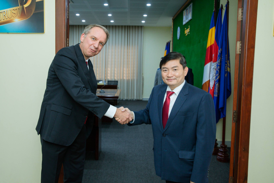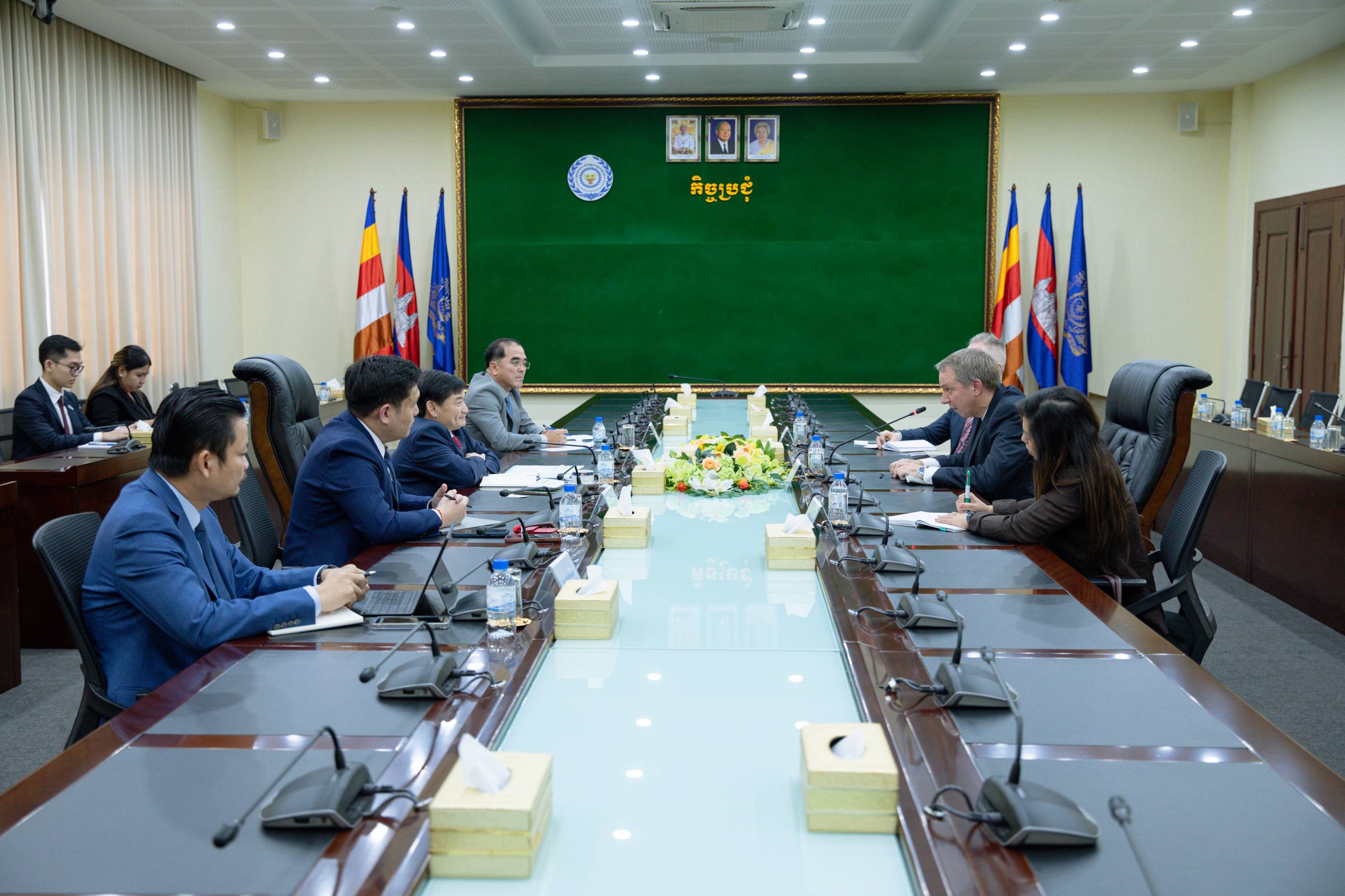 នាឱកាសនោះ ឯកឧត្ដមរដ្ឋមន្ត្រី បានសម្តែងនូវការស្វាគមន៍យ៉ាងកក់ក្តៅចំពោះ លោក Thomas Finken និងបានបញ្ជាក់ជូននូវការគាំទ្រយ៉ាងពេញទំហឹងចំពោះគំនិតផ្តួចផ្តើមក្នុងការចង់បានកិច្ចសហប្រតិបត្តិការរវាងធនាគារអភិវឌ្ឍន៍អាល្លឺម៉ង់ (KFW) ជាមួយក្រសួងការងារ និងបណ្ដុះបណ្ដាលវិជ្ជាជីវៈ ជាពិសេសពាក់ព័ន្ធនឹងវិស័យសន្តិសុខសង្គម។ បន្ថែមពីនេះ ឯកឧត្ដមរដ្ឋមន្រ្តី ក៏បានលើកឡើងនូវកាលានុវត្តភាពនៃកិច្ចសហការជាមួយធនាគារអភិវឌ្ឍន៍អាល្លឺម៉ង់ (KFW) លើវិស័យបណ្ដុះបណ្ដាលវិជ្ជាជីវៈ ក្នុងគោលបំណងអភិវឌ្ឍធនធានមនុស្សនៅប្រទេសកម្ពុជា។