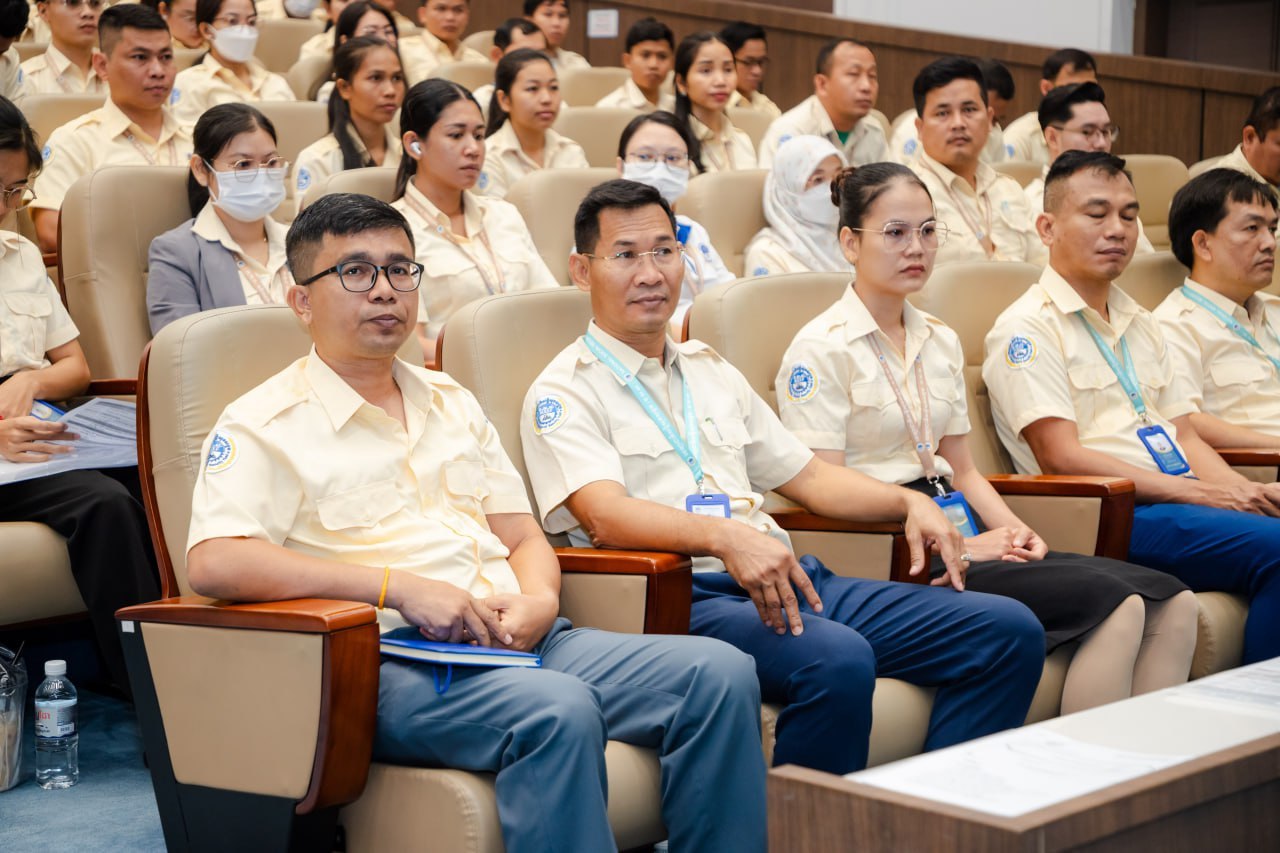 ថ្លែងក្នុងពិធីបើកវគ្គបណ្តុះបណ្តាល រយៈ ពេល៣ថ្ងៃ ចាប់ពីថ្ងៃទី១៥ ដល់ថ្ងៃទី១៧ ខែធ្នូ ឆ្នាំ២០២៥ ឯកឧត្តម អ៉ិន ខេមរា រដ្ឋលេខាធិការ តំណាងដ៏ខ្ពង់ខ្ពស់ ឯកឧត្តម ហេង សួរ រដ្ឋមន្ត្រី ក្រសួងការងារ និងបណ្តុះបណ្តាលវិជ្ជាជីវៈ បានលើកសរសើរដល់ការខិតខំបំពេញតួនាទីដ៏សំខាន់របស់បេឡាជាតិសន្តិសុខសង្គម ក្នុងការផ្តល់សេវាសន្តិសុខសង្គមជូនបងប្អូនកម្មករនិយោជិត ឱ្យទទួលបាននូវអត្ថប្រយោជន៍ពីរបបសន្តិសុខសង្គមផ្នែកគ្រោះថ្នាក់ការងារ ថែទាំសុខភាព និងប្រាក់សោធន រួមទាំងអត្ថប្រយោជន៍ច្រើនទៀតដែលរាជរដ្ឋាភិបាលផ្តល់ជូនកិច្ចគាំពាសង្គម។ ដើម្បីបង្កើនប្រសិទ្ធនៃការអនុវត្តច្បាប់និងលិខិតបទដ្ឋានគតិយុត្ត ឯកឧត្តម បានផ្តល់ការណែនាំដល់អធិការសន្តិសុខសង្គម ដែលជាសិក្ខាកាមទាំងអស់ ចូលរួមយកចិត្តទុកដាក់ស្តាប់ ចាប់យកនូវខ្លឹមសារគន្លឹះពីការធ្វើបទបង្ហាញរបស់គ្រូឧទ្ទេស ដើម្បីទទួលបានចំណេះដឹងបន្ថែម និងជាមូលដ្ឋានក្នុងការអនុវត្តតួនាទីភារកិច្ចរបស់ខ្លួន ប្រកបដោយប្រសិទ្ធភាព តម្លាភាព ការពារប្រយោជន៍ស្របច្បាប់របស់បងប្អូនកម្មករនិយោជិត។