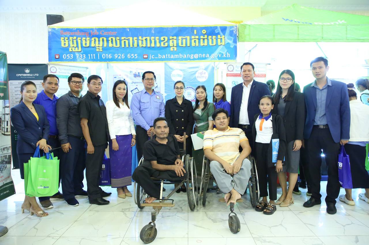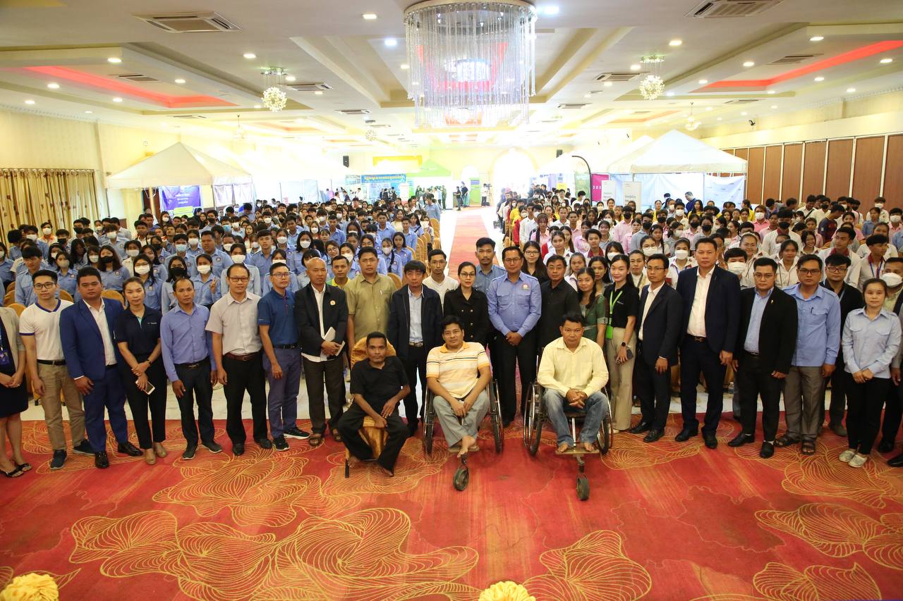 (បាត់ដំបង)៖ ថ្ងៃនេះ ឱកាសការងារសរុបប្រមាណ ១.៥ ម៉ឺន កន្លែង ពីក្រុមហ៊ុនជាច្រើនក្នុងវិស័យសំខាន់ៗដូចជា សេវាកម្ម ឧស្សាហកម្ម និងកសិកម្ម ត្រូវបាននាំយកទៅជូនយុវជន សិស្ស/និស្សិត និងអ្នកស្វែងរកការងារក្នុងខេត្តបាត់ដំបងតាមរយៈវេទិកាទស្សនកិច្ចការងារស្តីពី៖ «ឱកាសការងារ និងការត្រៀមខ្លួនចូលទីផ្សារការងារ» ដែលរៀបចំឡើងដោយទីភ្នាក់ងារជាតិមុខរបរ និងការងារ (NEA) នៃក្រសួងការងារ និងបណ្តុះបណ្តាលវិជ្ជាជីវៈ សហការជាមួយ សហភាពសហព័ន្ធយុវជនកម្ពុជា និងកម្មវិធីអភិវឌ្ឍន៍ជំនាញនៃអង្គការ Swisscontact និងមានការគាំទ្រពីមន្ទីរការងារ និងបណ្តុះបណ្តាលវិជ្ជាជីវៈ ខេត្តបាត់ដំបង។