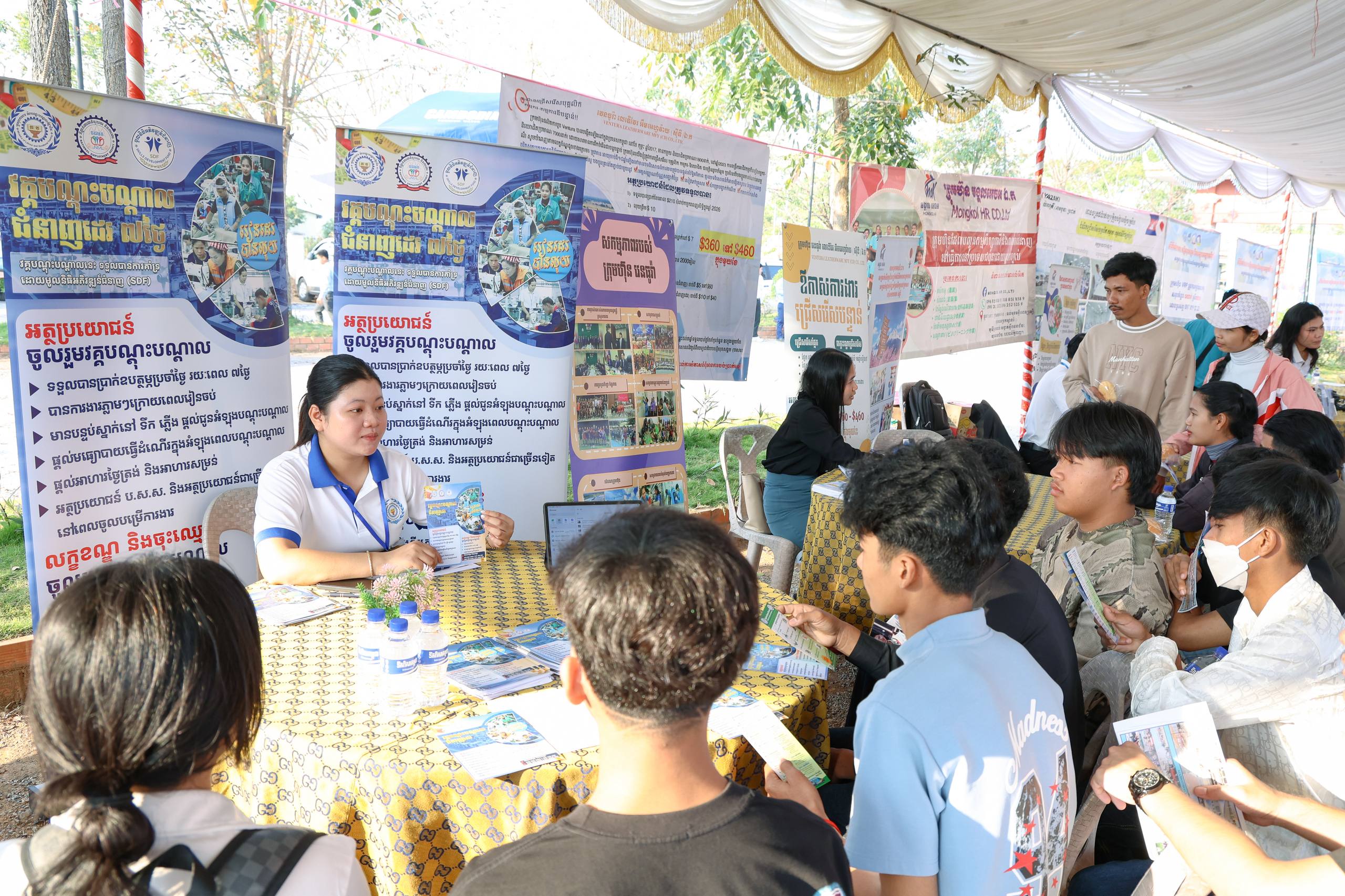 សម្រាប់រោងចក្រ សហគ្រាសទាំង៤ ដែលសម្ភាសផ្តល់ឱកាសការងារភ្លាមៗក្នុងវេទិកាការងារនាពេលនោះ រួមមាន៖ រោងចក្រ វេនធូរ៉ា លេឌើវែរ អឹមអេហ្វវ៉ាយ (ស៊ីឌី) ឯ.ក, រោងចក្រ យ៉ាហ្សាគិ (ខេបូឌា)ប្រូដាក់, ក្រុមហ៊ុន វី អូ ភី ខូអិលធីឌី និងក្រុមហ៊ុន ឆាយណាវ័រយាន៕