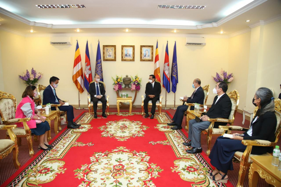 (ភ្នំពេញ)៖ លោក Patrice Vignesនាយកគ្រប់គ្រងប្រចាំប្រទេសរបស់ក្រុមហ៊ុន ឌីលីវើរី ហេរ៉ូ(ខេមបូឌា) ឯ.ក (foodpanda) នាព្រឹកថ្ងៃទី២៣ ខែធ្នូ ឆ្នាំ២០២១ បានចូលជួបឯកឧត្តមបណ្ឌិត អ៉ិត សំហេង រដ្ឋមន្ត្រីក្រសួងការងារ និងបណ្តុះបណ្តាលវិជ្ជាជីវៈ ពីការប្តេជ្ញាចិត្តរបស់ក្រុមហ៊ុន ចំពោះការអភិវឌ្ឍធនធានមនុស្សនៅក្នុងប្រទេសកម្ពុជា និងទីផ្សារការងារសម្រាប់យុវជន។