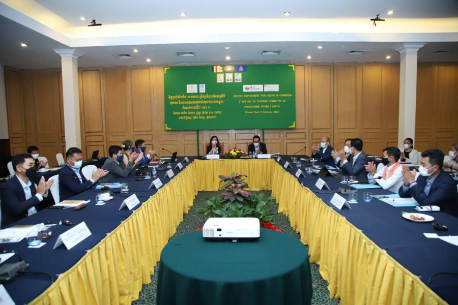 (ភ្នំពេញ)៖ ឯកឧត្តមបណ្ឌិត អុិត សំហេង រដ្ឋមន្ត្រីក្រសួងការងារ និងបណ្ដុះបណ្ដាលវិជ្ជាជីវៈ និងជាសហប្រធានគណៈប្រឹក្សាភិបាលនៃ កម្មវិធីមុខរបរ និងការងារសមរម្យរបស់យុវជននៅកម្ពុជា (កម្មវិធី DEY) និងលោកស្រី Pauline Tamesis អ្នកសម្របសម្រួលអង្គការសហប្រជាជាតិប្រចាំកម្ពុជា និងជាសហប្រធាន កម្មវិធី DEY បានដឹកនាំកិច្ចប្រជុំលើកទី៣ របស់គណៈប្រឹក្សាភិបាលនៃកម្មវិធីមុខរបរ និងការងារសមរម្យរបស់យុវជននៅកម្ពុជា (DEY) ដោយមានការចូលរួមពី តំណាងជាន់ខ្ពស់នៃក្រសួងអប់រំ យុវជន និងកីឡា ភ្នាក់ងារអង្គការសហប្រជាជាតិ រួមមាន៖ អង្គការ ILO, អង្គការ UNESCO, អង្គការ UNICEF និងអង្គការ UNIDO ភ្នាក់ងារស្វីសសម្រាប់ការអភិវឌ្ឍ និងកិច្ចសហប្រតិបត្តិការ (SDC) និង តំណាងយុវជន។