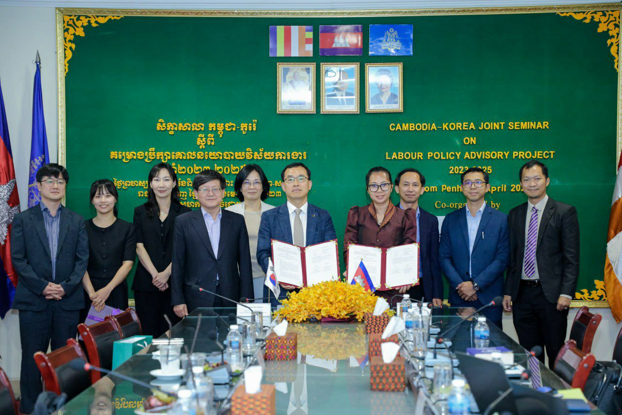 នាថ្ងៃទី២៦ ដល់២៧ ខែមេសា ឆ្នាំ២០២៣ ក្រសួងការងារ និងបណ្តុះបណ្តាលវិជ្ជាជីវៈ សហការជាមួយ ប្រតិភូសេវាការងារ និងមុខរបរកូរ៉េ Korea Labor and Employment Service (KLES)នៃរាជរដ្ឋាភិបាលនៃសាធារណរដ្ឋកូរ៉េ បានរៀបចំសិក្ខាសាលា និងពិធីចុះហត្ថលេខាជាផ្លូវការលើឯកសារកិច្ចព្រមព្រៀងការអនុវត្ត (Implementing Agreement) កម្ពុជា-កូរ៉េ ស្តីពី "គម្រោងប្រឹក្សាគោលនយោបាយវិស័យការងារ ឆ្នាំ២០២៣-២០២៥" ក្រោមអធិបតីភាព លោកជំទាវ សុវណ្ណ សុវណ្ណារតន៍ រដ្ឋលេខាធិការ នៃក្រសួងការងារ និងបណ្តុះបណ្តាលវិជ្ជាជីវៈ និងជាប្រធានក្រុមការងារអនុវត្តគម្រោងនេះ និងមានការចូលរួមពីតំណាងមកពី អគ្គលេខាធិការដ្ឋានក្រុមប្រឹក្សាជាតិប្រាក់ឈ្នួលអប្បបរមា, នាយកដ្ឋានអធិការកិច្ចការងារ, នាយកដ្ឋានវិវាទការងារ, នាយកដ្ឋានសហប្រតិបតិការអន្តរជាតិ និងភាគីពាក់ព័ន្ធ។