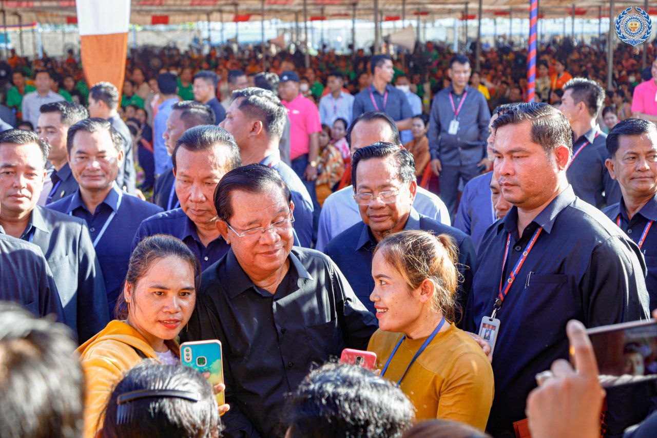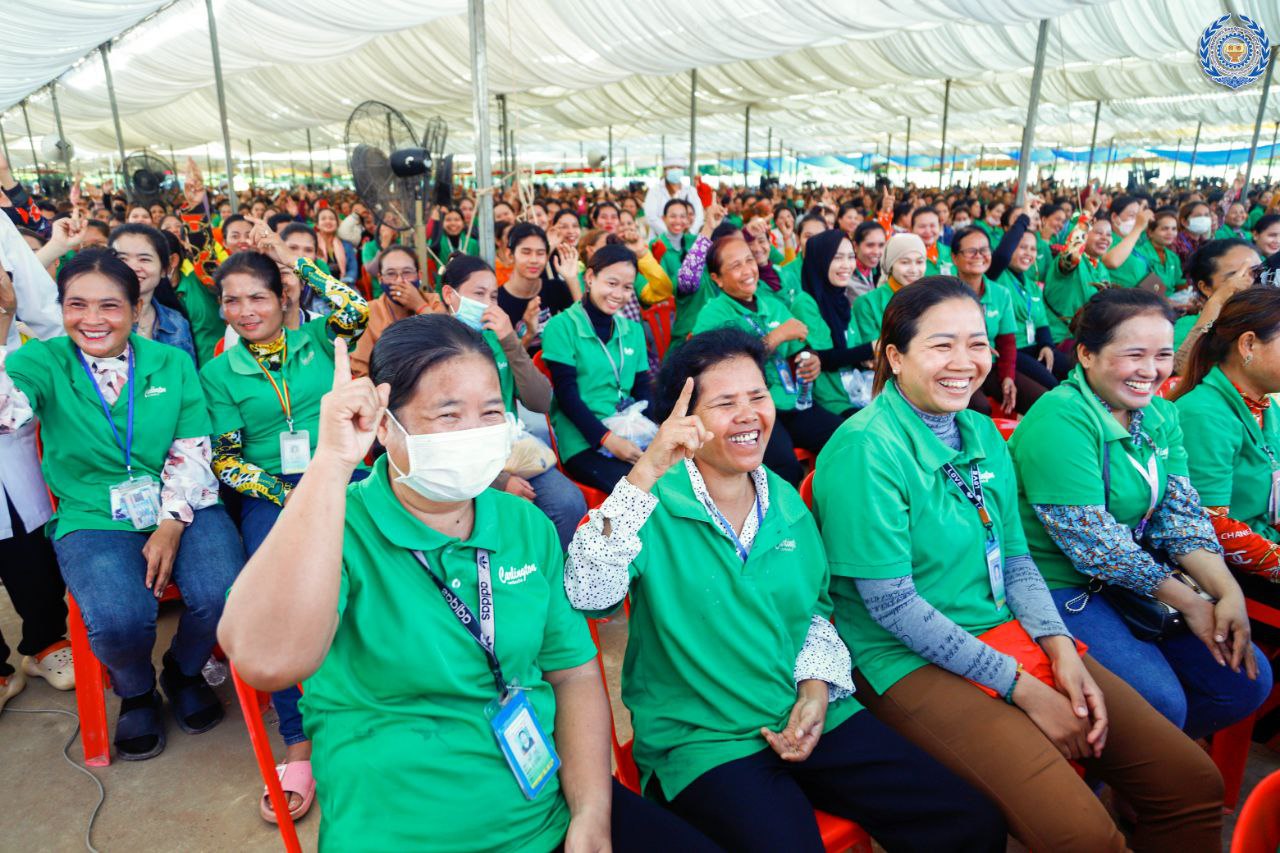 (កំពង់ចាម)៖ នៅព្រឹកថ្ងៃទី១៦ ខែមិថុនា ឆ្នាំ២០២៣ នេះ សម្តេចអគ្គមហាសេនាបតីតេជោ ហ៊ុន សែន នាយករដ្ឋមន្ត្រី នៃព្រះរាជាណាចក្រកម្ពុជា បានបន្តអញ្ជើញចុះជួបសំណេះសំណាលនិងសួរសុខទុក្ខ ដល់កូនក្មួយកម្មករ កម្មការិនី នៅរោងចក្រឡឺក្រោន ស៊ូ អ៊ិនដាសស្ត្រី (LECROWN SHOES INDUSTRY) ស្ថិតនៅភូមិរវៀង ឃុំខ្នុរដំបង ស្រុកជើងព្រៃ ខេត្តកំពង់ចាម ។