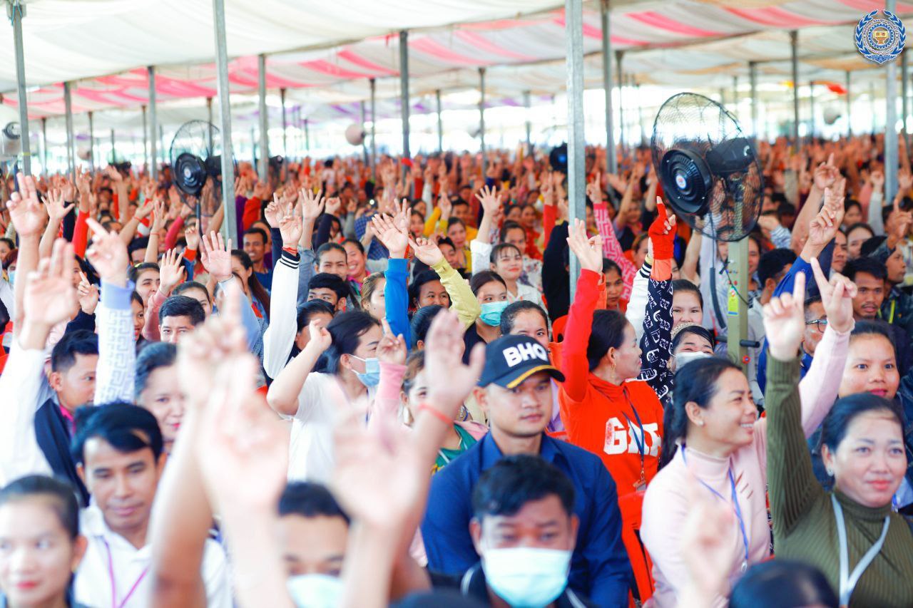 ព្រឹកនេះ សម្តេចតេជោ ហ៊ុន សែន បានបន្តអញ្ជើញចុះបងប្អូនជួបកម្មករ កម្មការិនី ជាង២ម៉ឺននាក់ជាបន្តទៀត នៅតំបន់សេដ្ឋកិច្ចពិសេស មេនហាតធេន ក្រុងបាវិត ខេត្តស្វាយរៀង
