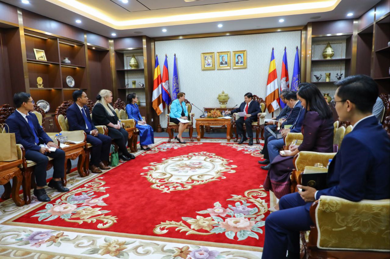 (ភ្នំពេញ)៖ ឯកឧត្តម ហេង សួរ រដ្ឋមន្ត្រីក្រសួងការងារ និងបណ្តុះបណ្តាលវិជ្ជាជីវៈ និងលោកស្រី KRISTIN PARCO ប្រធានបេសកកម្មអង្គការទេសន្តរប្រវេសន៍អន្តរជាតិ (IOM)ប្រចាំនៅកម្ពុជា បានឯកភាពគ្នាបន្តលើកកម្ពស់កិច្ចសហប្រតិបត្តិការគាំពារពលករទេសន្តរប្រវេសន៍នៅកម្ពុជា។