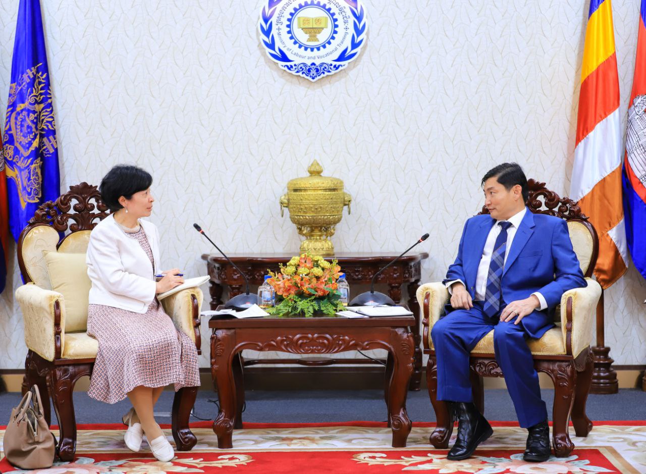 (ភ្នំពេញ)៖ ឯកឧត្តម ហេង សួរ រដ្ឋមន្ត្រីក្រសួងការងារ និងបណ្តុះបណ្តាលវិជ្ជាជីវៈ នៅរសៀលថ្ងៃទី២៥ ខែមេសា ឆ្នាំ២០២៤នេះ បានជួបពិភាក្សាជាមួយលោកស្រី Xiaoyan Qian (ស៊ាវយាន ឈាន) នាយិកានៃការិយាល័យអង្គការអន្តរជាតិខាងការងារ (ILO) ប្រចាំកម្ពុជា ឡាវ និងថៃ នៅទីស្តីការក្រសួង។