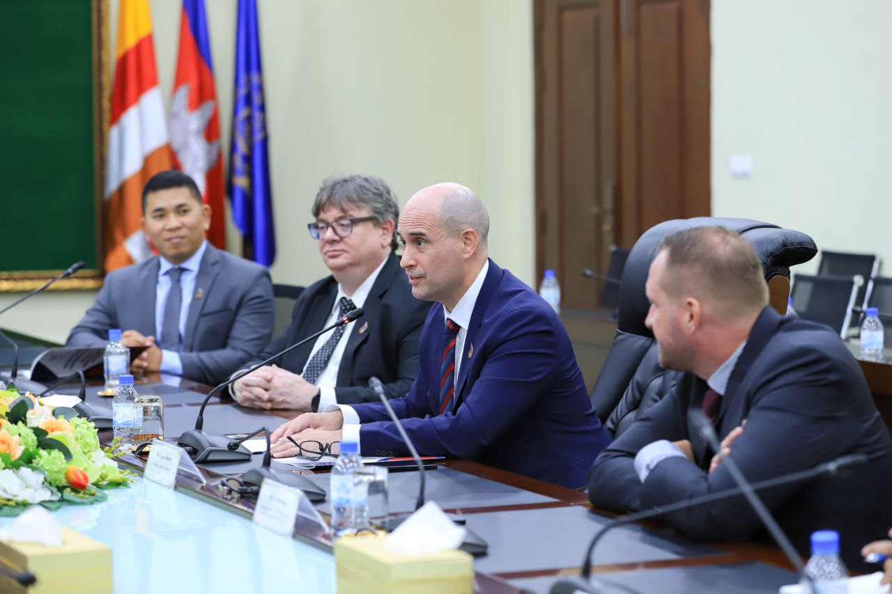 (ភ្នំពេញ)៖ ឯកឧត្តម ហេង សួរ រដ្ឋមន្ត្រីក្រសួងការងារ និងបណ្តុះបណ្តាលវិជ្ជាជីវៈ នៅរសៀលថ្ងៃចន្ទ ទី៣ ខែមិថុនា ឆ្នាំ២០២៤នេះ បានជួបពិភាក្សាការងារជាមួយលោក Carsey Burnett ប្រធានសភាពាណិជ្ជកម្មអាមេរិកនៅកម្ពុជា (AmCham) នៅទីស្តីការក្រសួង។
