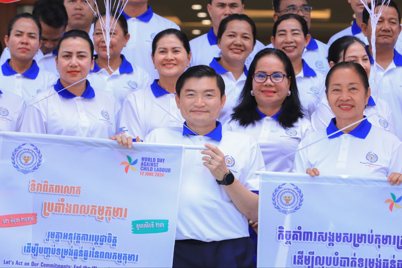 (ភ្នំពេញ)៖ ឯកឧត្តម ហេង សួរ រដ្ឋមន្ត្រីក្រសួងការងារ និងបណ្ដុះបណ្ដាលវិជ្ជាជីវៈ និងជាប្រធានគណ:កម្មាធិការជាតិប្រឆាំងពលកម្មកុមារ ព្រឹកថ្ងៃអង្គារ ទី៤ ខែមិថុនា ឆ្នាំ២០២៤នេះ បានអញ្ជើញជាអធិបតីក្នុងពិធីអបអរសាទរខួបលើកទី៧៥ ទិវាកុមារអន្តរជាតិ ១មិថុនាខួបលើកទី២៣ ទិវាពិភពលោកប្រឆាំងពលកម្មកុមារ ១២មិថុនា និងទិវាកុមារកម្ពុជា ឆ្នាំ២០២៤ ដែលរៀបចំឡើងនៅទីស្តីការក្រសួងការងារ និងបណ្តុះបណ្តាលវិជ្ជាជីវៈ ដោយមានសមាសភាពអញ្ជើញចូលរួម ពីក្រសួង ស្ថាប័នពាក់ព័ន្ធ អង្គការជាតិ អន្តរជាតិ តំណាងអង្គការសហជីព តំណាងអង្គការនិយោជក អាណាព្យាបាល និងកុមារាកុមារី។