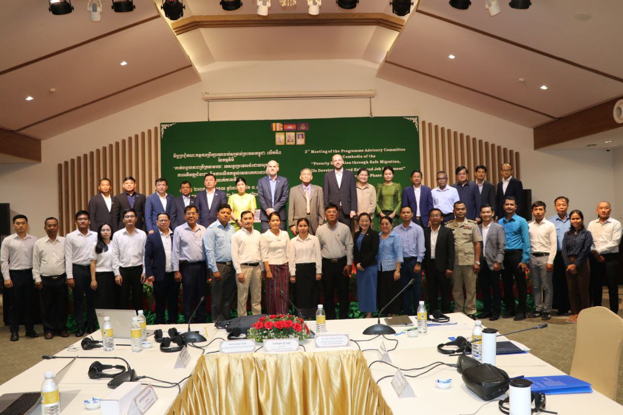 នៅថ្ងៃទី២២ ខែកក្កដា ឆ្នាំ២០២៤ នៅសណ្ឋាគារ ហ៊ីម៉ាវ៉ារី រាជធានីភ្នំពេញ ក្រោមកិច្ចសហការជាមួយអង្គការអន្តរជាតិទេសន្តរប្រវេសន៍ (IOM) ឯកឧត្តម ហ៊ូ វុឌ្ឍី រដ្ឋលេខាធិការ នៃក្រសួងការងារ និងបណ្តុះបណ្តាលវិជ្ជាជីវៈ បានដឹកនាំកិច្ចប្រជុំគណៈកម្មការប្រឹក្សាយោបល់សម្រាប់ប្រទេសកម្ពុជាក្នុងការអនុវត្តកម្មវិធីការកាត់បន្ថយភាពក្រីក្រតាមរយៈការធ្វើទេសន្តរប្រវេសន៍ដោយសុវត្ថិភាព ការអភិវឌ្ឍជំនាញ និងលើកកម្ពស់សេវារកការងារឱ្យធ្វើ នៅប្រទេសកម្ពុជា ឡាវ មីយ៉ាន់ម៉ា និងថៃ (PROMISE) ដោយមានការអញ្ជើញចូលរួមពីតំណាងក្រសួងការងារ និងបណ្តុះបណ្តាលវិជ្ជាជីវៈ ក្រសួងសេដ្ឋកិច្ច និងហិរញ្ញវត្ថុ ក្រសួងកិច្ចការនារី ក្រសួងមហាផ្ទៃ ក្រសួងសង្គមកិច្ច អតីតយុវជន និងយុវសម្បទា តំណាងគណៈអភិបាលខេត្តបាត់ដំបង បន្ទាយមានជ័យ និងខេត្តសៀមរាប ព្រមទាំង តំណាងសមាគមនិយោជក សមាគមទីភ្នាក់ងារជ្រើសរើសពលករកម្ពុជា សហជីព អង្គការសង្គមស៊ីវិល និងដៃគូអភិវឌ្ឍពាក់ព័ន្ធ។