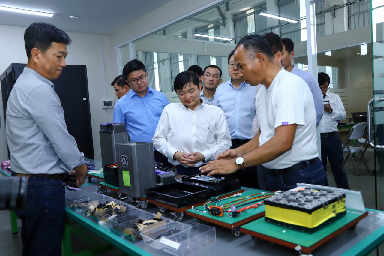 ក្នុងនោះថ្នាក់ដឹកនាំទាំងពីរ បានស្តាប់បទបង្ហាញរបស់អ្នកជំនាញលើដំណើរការផលិត និងការផ្គុំដំឡើង ម៉ូតូ កង់ រ៉ឺម៉កដែលដើរដោយថាមពលអគ្គិសនី និងការដើរពិនិត្យមើលជាក់ស្តែងនូវសង្វាក់ផលិតកម្មជាកញ្ចប់របស់រោងចក្រ។