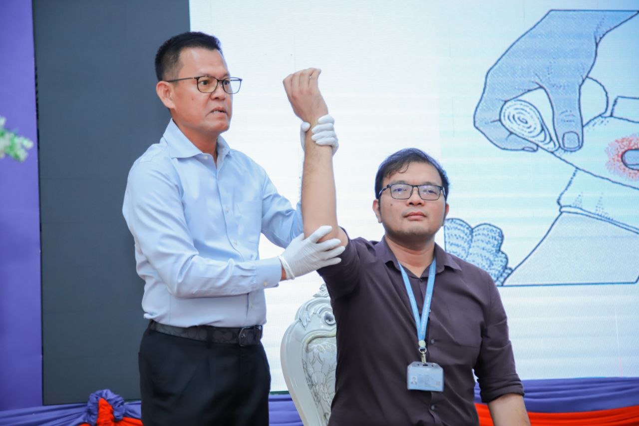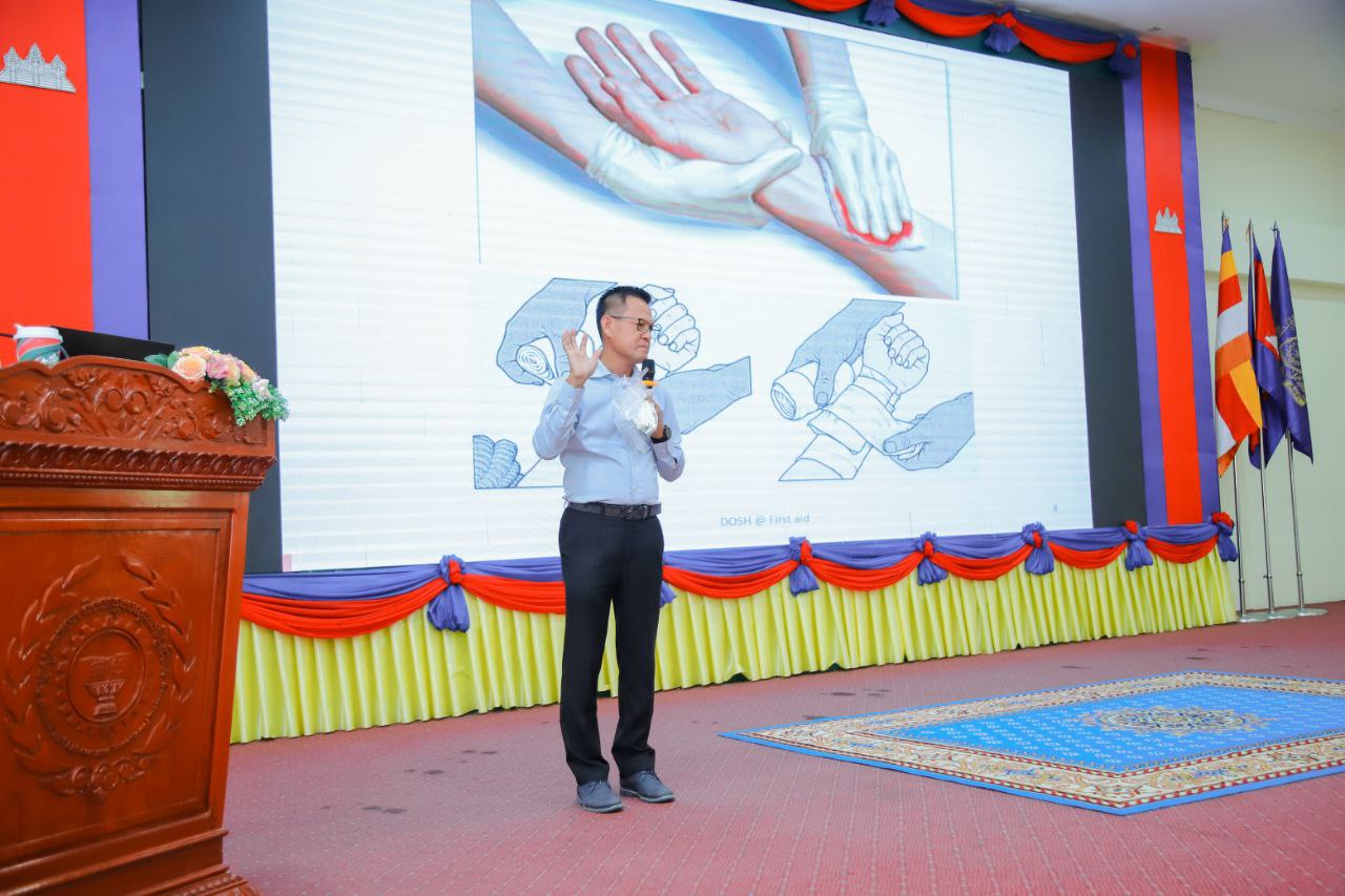 ឯកឧត្តមវេជ្ជ. ហ៊ុយ ហានសុង រដ្ឋលេខាធិការ និងជាតំណាងដ៏ខ្ពង់ខ្ពស់របស់ឯកឧត្តមរដ្ឋមន្ត្រី បានអញ្ជើញជាអធិបតីបើកវគ្គបណ្តុះបណ្តាលស្តីពីវិជ្ជាសង្គ្រោះបឋមដល់មន្ត្រីរាជការ ក្រោមឱវាទក្រសួងការងារ និងបណ្តុះបណ្តាលវិជ្ជាជីវៈ ដែលរៀបចំឡើងដោយនាយកដ្ឋានពេទ្យការងារ ដោយមានការចូលរួមពីតំណាងនាយកដ្ឋាន និងអង្គភាពក្រោមឱវាទក្រសួងការងារ និងបណ្តុះបណ្តាលវិជ្ជាជីវៈសរុបចំនួន ១១៥នាក់។