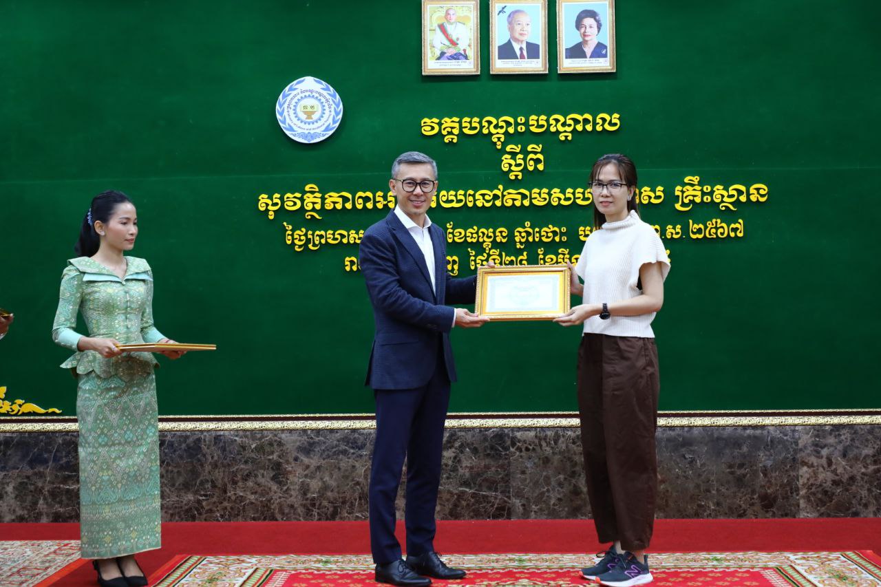ជាក់ស្តែង តាមរយៈវគ្គបណ្ដុះបណ្ដាលសុវត្ថិភាពអគ្គិភ័យ ការបង្ការជំងឺអេដស៍ និងគ្រឿងញៀននៅតាមសហគ្រាស គ្រឹះស្ថាន ក្រោមអធិបតីភាព ឯកឧត្តមវេជ្ជបណ្ឌិត ហ៊ុយ ហានសុង រដ្ឋលេខាធិការ តំណាងដ៏ខ្ពង់ខ្ពស់ ឯកឧត្តម ហេង សួរ រដ្ឋមន្ត្រីក្រសួងការងារ និងបណ្ដុះបណ្ដាលវិជ្ជាជីវៈ រួមជាមួយថ្នាក់ដឹកនាំ មន្ត្រីរាជការ តំណាងរោងចក្រ សហគ្រាស គ្រឹះស្ថាន កម្មករនិយោជិត និងផ្នែកពាក់ព័ន្ធសរុបជាង ២០០នាក់ នៅថ្ងៃទី២៨ ខែមីនា ឆ្នាំ២០២៤នេះ។