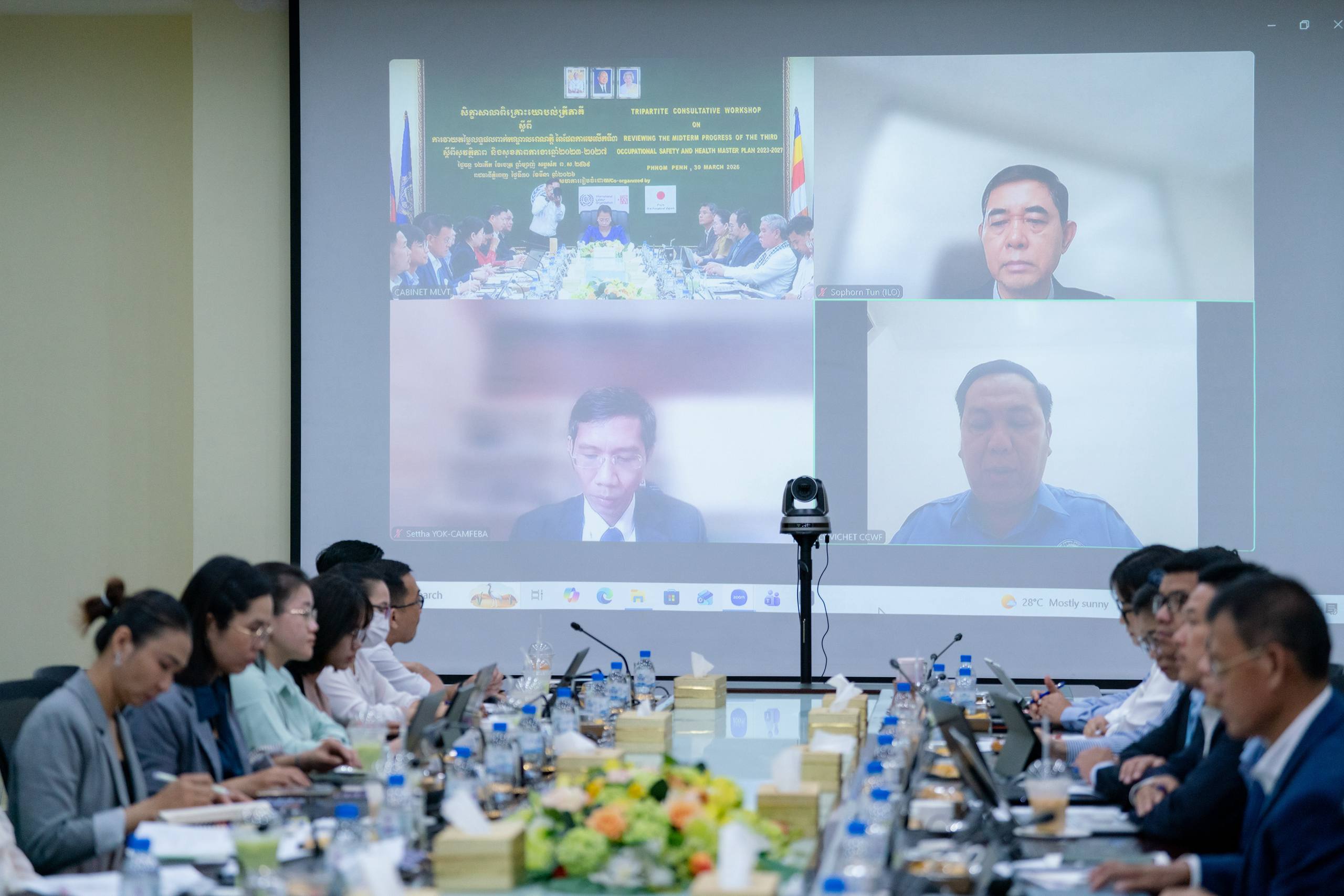 (ភ្នំពេញ)៖ នៅព្រឹកថ្ងៃចន្ទ ទី៣០ ខែមីនា ឆ្នាំ២០២៦ លោកជំទាវ សុវណ្ណ វណ្ណារតន៍ រដ្ឋលេខាធិការប្រចាំការ តំណាងដ៏ខ្ពស់ខ្ពង់របស់ឯកឧត្តម ហេង សួរ រដ្ឋមន្ត្រី ក្រសួងការងារ និងបណ្តុះបណ្តាលវិជ្ជាជីវៈបានអញ្ជើញជាអធិបតីក្នុងសិក្ខាសាលាពិគ្រោះយោបល់ត្រីភាគី ដើម្បីវាយតម្លៃលទ្ធផលពាក់កណ្តាលអាណត្តិនៃការអនុវត្តផែនការមេលើកទី៣ ស្តីពីសុវត្ថិភាព និងសុខភាពការងារ ឆ្នាំ២០២៣-២០២៧។