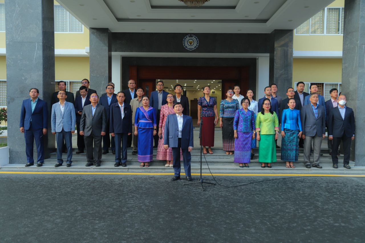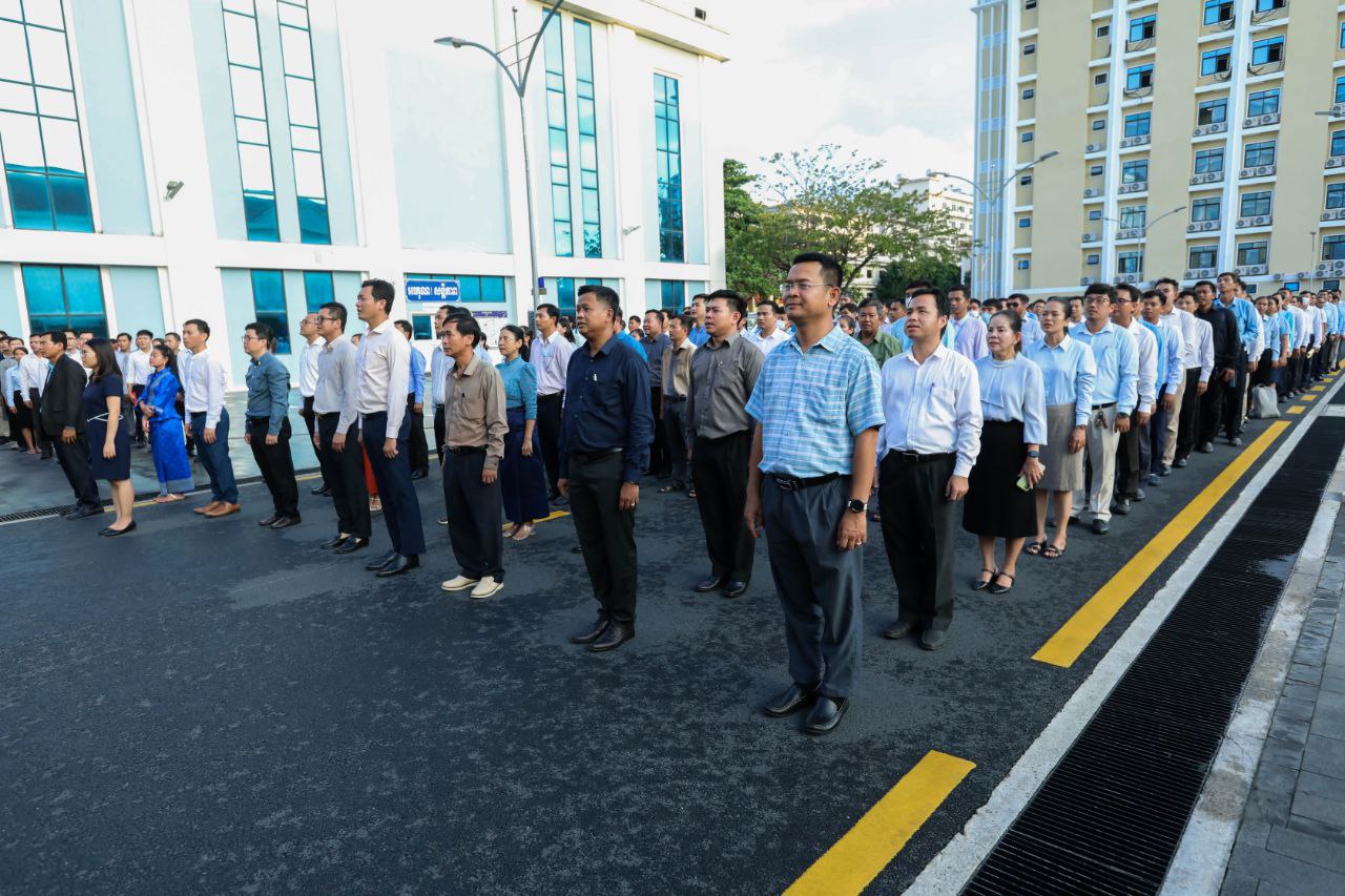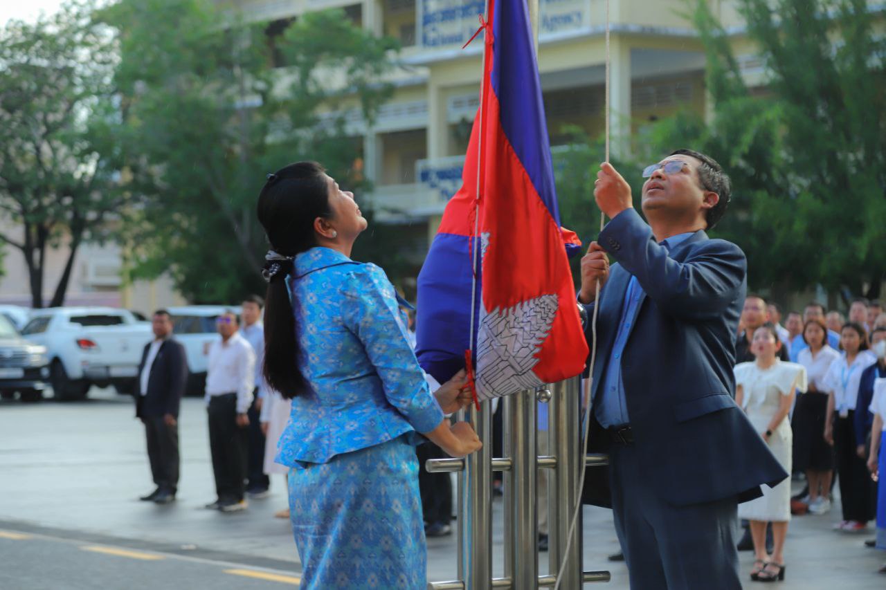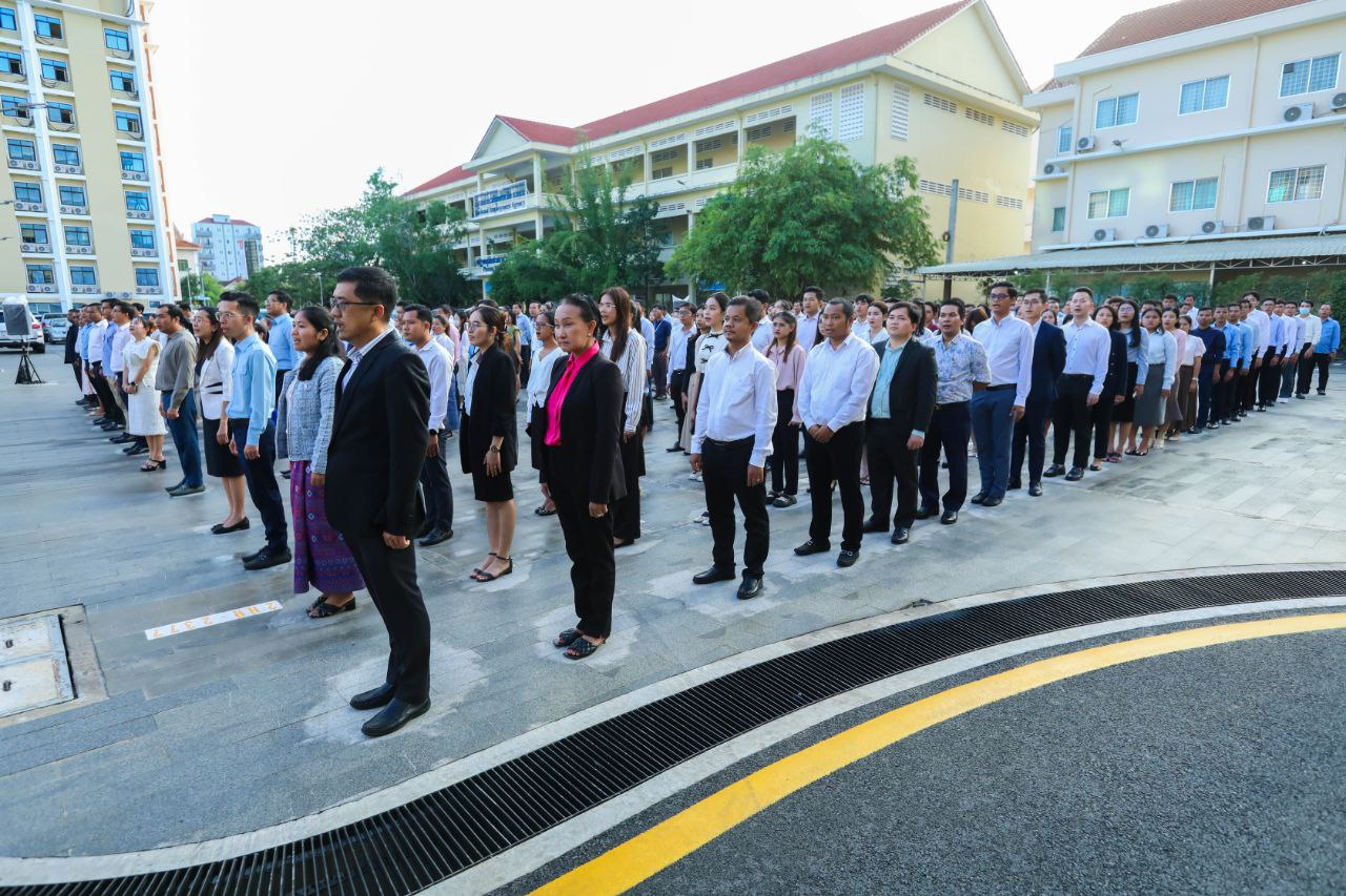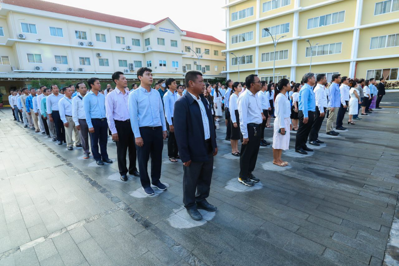 ថ្នាក់ដឹកនាំ និងមន្ត្រីរាជការនៃក្រសួងការងារ និងបណ្តុះបណ្តាលវិជ្ជាជីវៈ បានចូលរួមគោរពទង់ជាតិ នៃព្រះរាជាណាចក្រកម្ពុជា និងច្រៀងបទពង្សាវតារខ្មែរ។