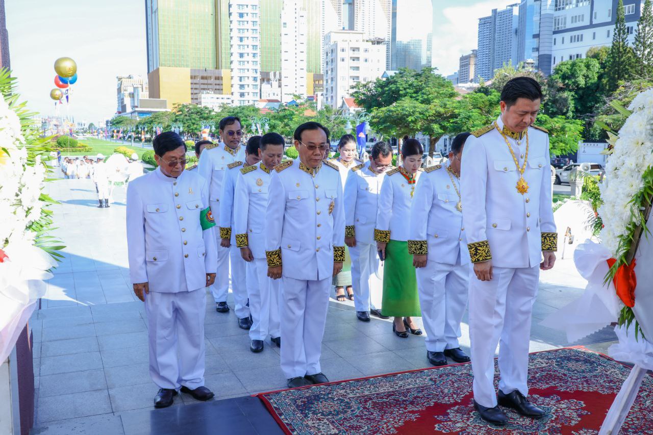 បន្ទប់មក គណៈប្រតិភូក្រសួងការងារ និងបណ្តុះបណ្តាលវិជ្ជាជីវៈ បានបន្តអញ្ជើញថ្វាយកម្រងផ្កា គោរពព្រះវិញ្ញាណក្ខន្ធព្រះករុណាព្រះបាទសម្តេចព្រះនរោត្តម សីហនុ ព្រះមហាវីរក្សត្រ ព្រះវររាជបិតាឯករាជ្យ បូរណភាពទឹកដី និងឯករាជ្យជាតិខ្មែរ “ព្រះបរមរតនកោដ្ឋ” នៅមណ្ឌបព្រះឆាយាលក្ខណ៍ព្រះបរមរតនកោដ្ឋ នាខាងកើតវិមានឯករាជ្យ៕