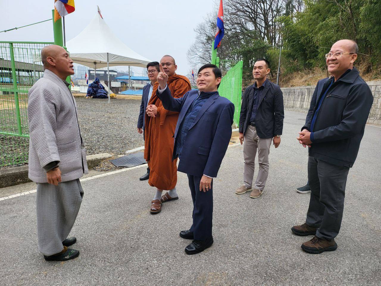 (សាធារណរដ្ឋកូរ៉េ)៖ ក្នុងអំឡុងពេលបំពេញទស្សនកិច្ចនៅសាធារណរដ្ឋកូរ៉េឯកឧត្តម ហេង សួរ រដ្ឋមន្ត្រីក្រសួងការងារ និងបណ្តុះបណ្តាលវិជ្ជាជីវៈ បានឆ្លៀតពេលវេលាពីជំនួបជាមួយភាគីកូរ៉េ បានចូលថ្វាយបង្គំ ព្រះបញ្ញាសត្ថាចារ្យ ពៅ សុភ័ក្រ្ត ព្រះរាជាគណៈថ្នាក់កិត្តិយស គង់នៅមជ្ឈមណ្ឌលព្រះពុទ្ធសាសនាវត្តខ្មែរ-គូមី និងព្រះភិក្ខុ រិន សារ៉ូ ជយរក្ខិតោ គង់នៅមជ្ឈមណ្ឌលព្រះពុទ្ធសាសនាខ្មែរ ព្រមទាំងបានប្រគេនបច្ច័យសម្រាប់កសាងវត្ត។